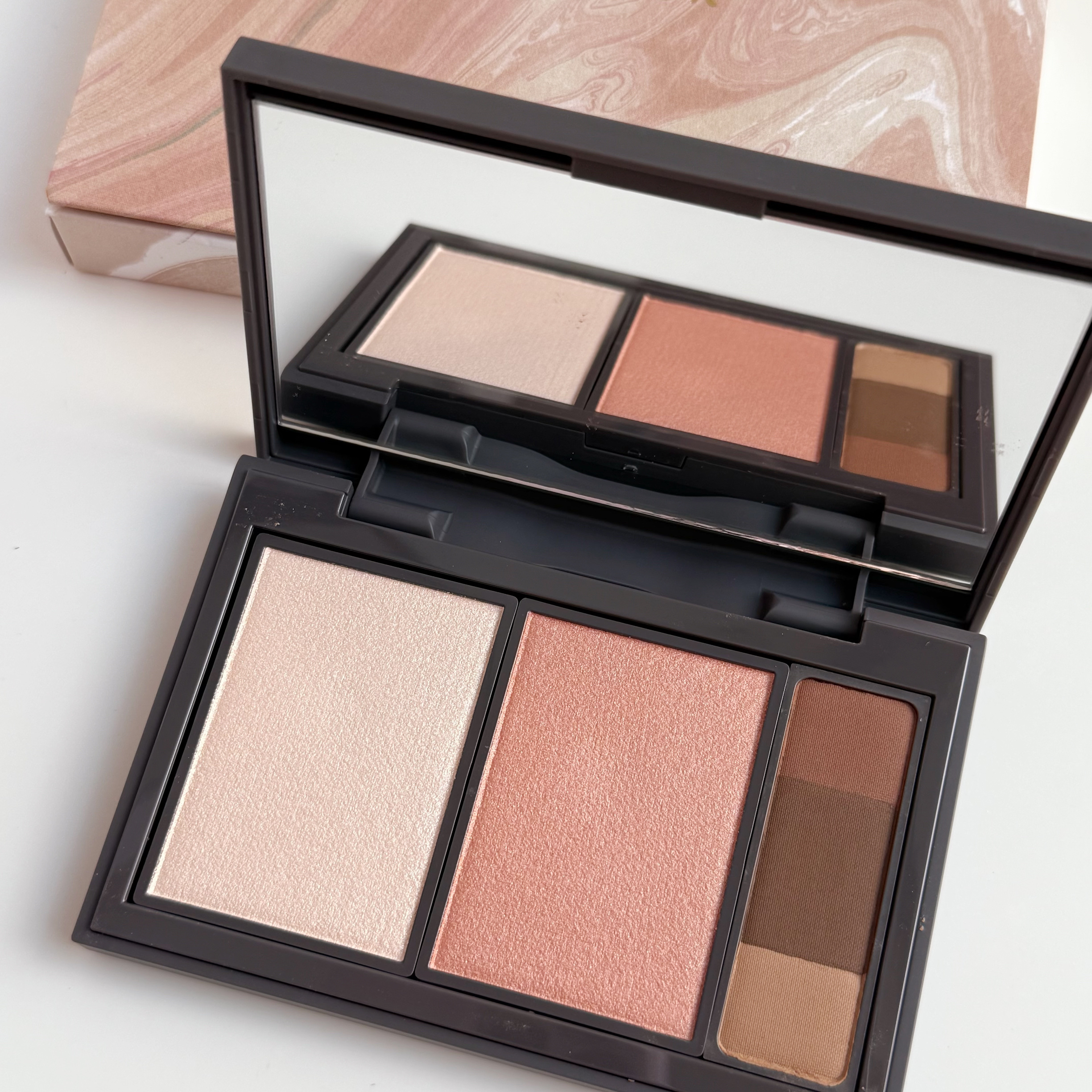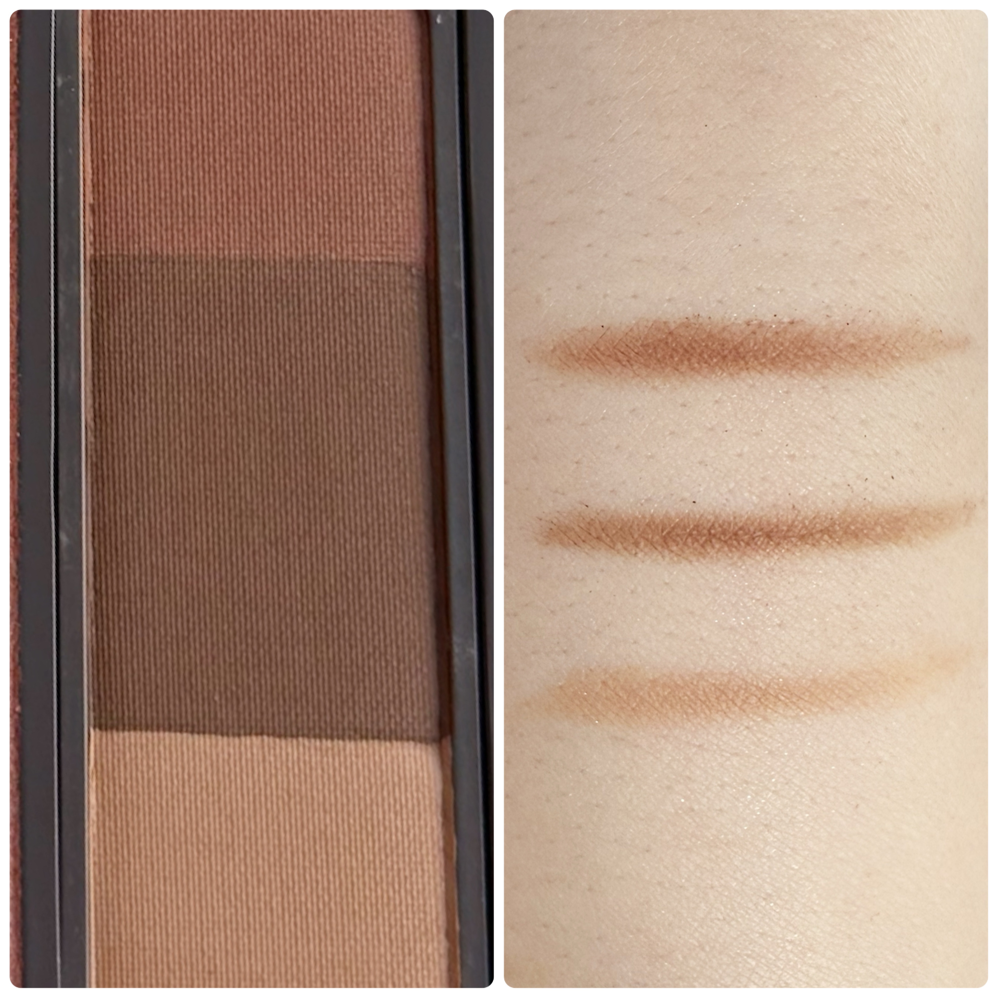 パーソナルカラーに合わせたオールインパレットで、ハイライト、チーク、アイブロウパウダー、シェーディングが含まれています。 ハイライトとチークはラメが多くてキラキラ。チークのカラーが絶妙でかわいかった。アイブロウやシェーディングパウダーはイエベ寄りのブラウンなので馴染みやすいなと思った。 イエベよりの基本アイテムを一通り欲しい時に便利。 でも持ち歩くにはちょっと重いのと、ブラシでとるとかなり粉飛びするのが気になった。