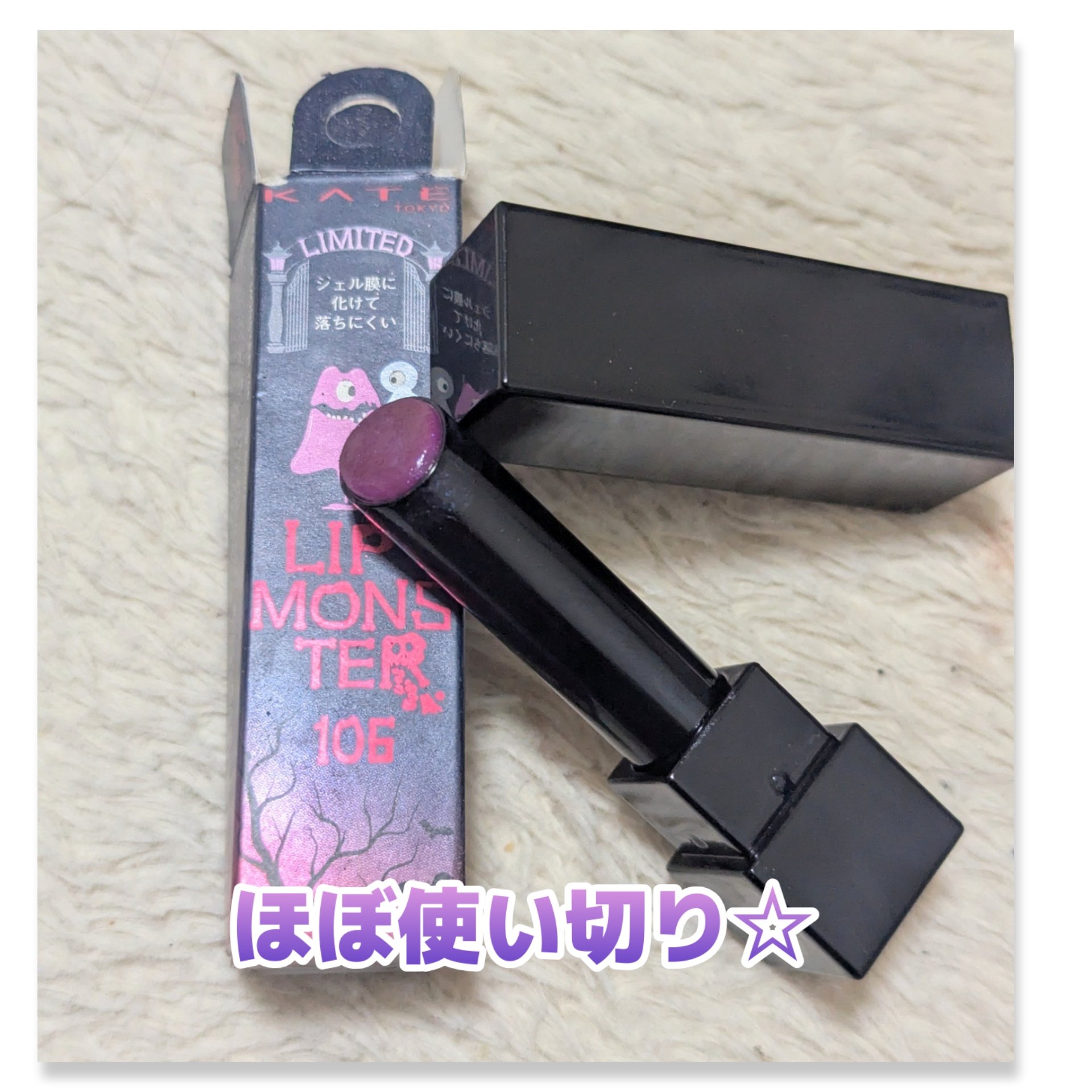 【商品名】KATEリップモンスター105 日没後の情熱 限定色大好きなリップモンスター使い切り🤍リップモンスターは何本か持ってるけど、その中でも好きな色でした。ちなみに使ったことがあるのは、01欲望の塊、03陽炎、05ダークフィグ、07ラスボ...