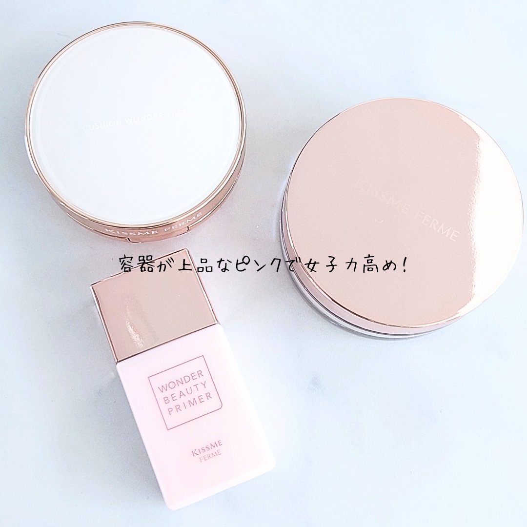 @kissme.fermさまのキャンペーンに当選しました!【キスミーフェルム ワンダービューティプライマーSP】★★★★☆【カバー力】カバー力は高くないけど、自然に色ムラや小さい毛穴をカバー【ツヤorマット】薄膜セミつや肌仕上がり【良いところ】★伸びかいいので少量でも全顔カバーできる!★うすピンク色なので、うぶ肌に仕込める!★SPF50+/PA+++★薄膜仕上がりでファンデ重ねても厚塗り感でない!【イマイチなところ】☆シャカシャカタイプがめんどくさい☆濃いシミは隠せない。【使い方】スキンケア後にシャカシャカ振ってから手に適量のせて顔全体に広げる。【キスミーフェルム クッションワンダーラストSP】★★★★★【崩れにくさ】紹介した3アイテムで仕上げると一日マスクで過ごしてても帰ってきて崩れなし【カバー力】自然に色ムラや小さい毛穴をカバー。シミは重ねても重ねても隠せない【ツヤorマット】セミつや仕上がり【良いところ】★軽い使い心地で重ねても重ねても厚塗り感なし!★トレンドの薄膜仕上がり!★もちがいい!★ドロップ型のパフで目の際も塗りやすい!【イマイチなところ】☆シミは隠せないのでコンシーラー必要【キスミーフェルムルースワンダーフィニッシュSP】★★★★★【崩れにくさ】紹介の3つのアイテムで夕方まで崩れにくい!【カバー力】ふんわりカバー【ツヤorマット】ふんわりつや肌仕上がり【良いところ】★もっちりパフが最強!★点在するキラキララメがふんわりの中に艶を与える【イマイチなところ】特に見当たらない!#プチプラコスメ#今月のご機嫌コスメ#毎日メイクにプラスワン#衣替えベースメイク#今日から始めるUV対策#予算5000円の推しコスメ