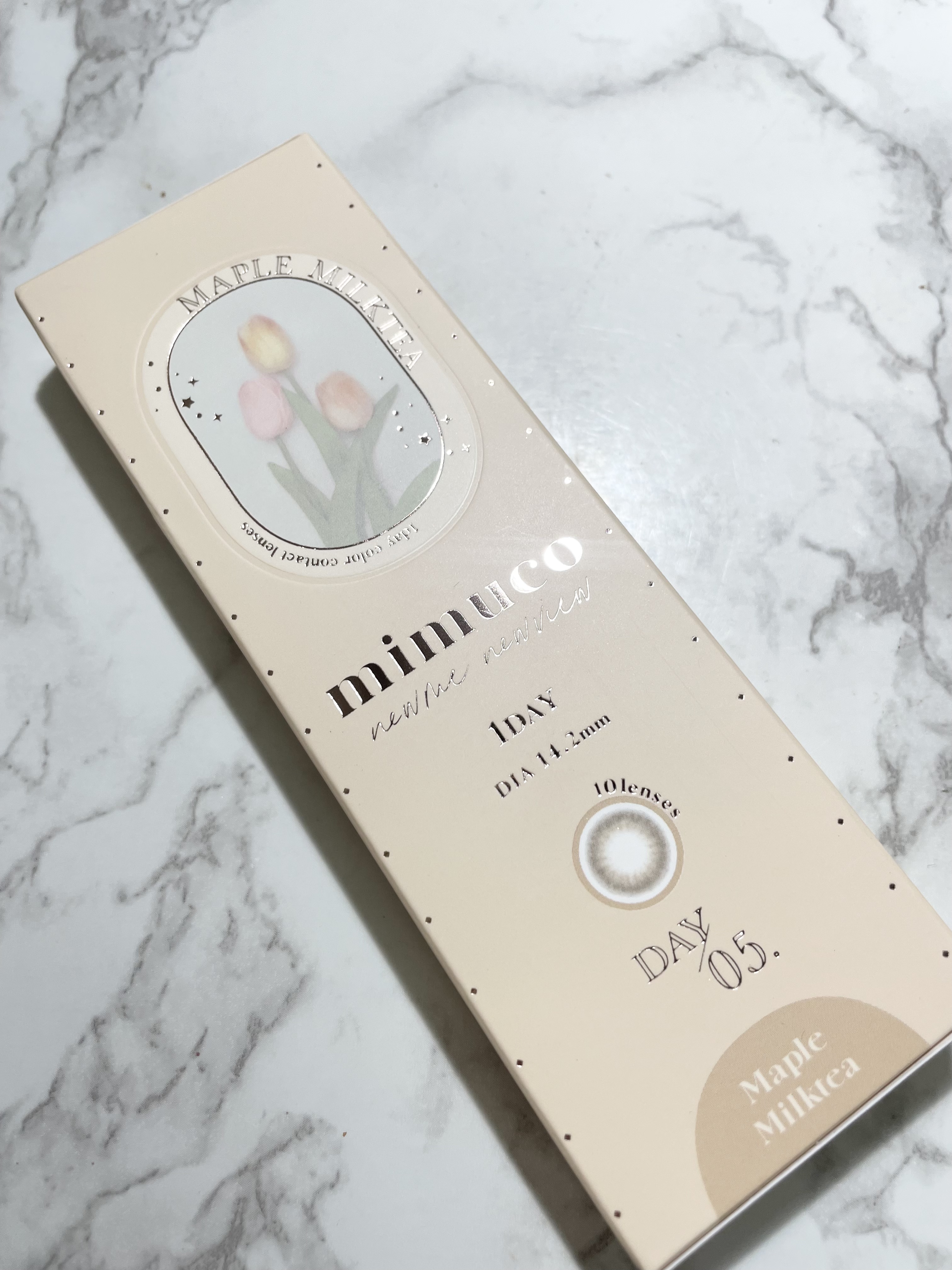 こんにちは👋😃今回はmimuco1dayメープルミルクティーについて紹介したいと思います! 見た目はちょっと黄色とブラウンが混ざったような色合いだなと思います! つけてみた感じゴロゴロもしないしまるでおとぎ話にでてくるキャラクターのような素敵な瞳になります。 つけ心地も私的にはいいかなと思います。今回も読んでいただきありがとうございます!