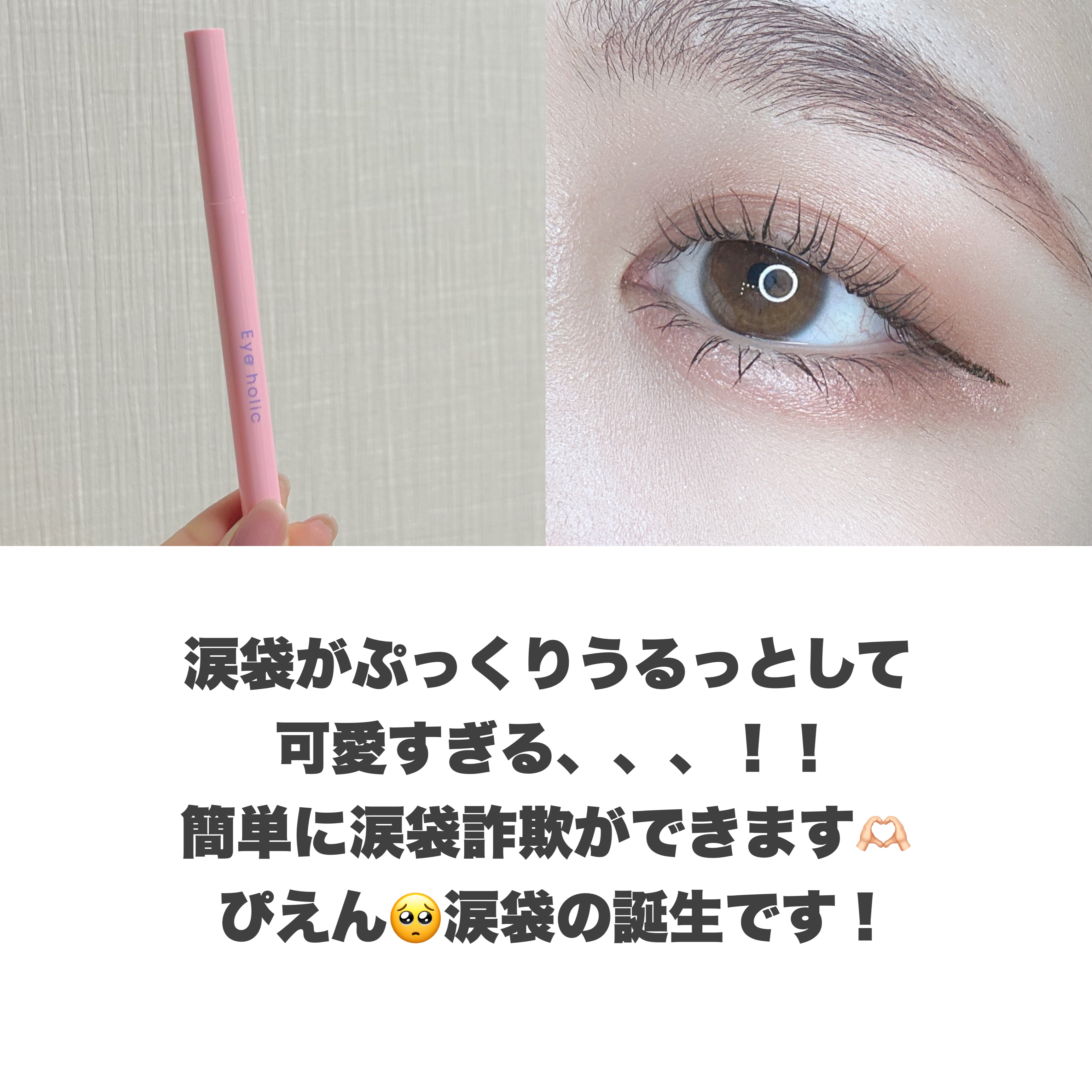 \うるうるぴえん涙袋爆誕/ 今日は使ってめちゃくちゃ良くておすすめすぎた涙袋爆誕ライナーをレポするよ🔥🔥 そんなアイホリックの新作✨ カラーは2カラーあるんだけど私はシャンパンピンクを今回使って見たよ✨ これさ結果から言うと…淚袋メイクしてる人全員に本気で激推ししたい。真顔 シャンパンピンクカラーなんだけど透け感があってかなり肌に馴染む🥺! そしてラメも均一につくからテク要らずで簡単なんよ… ほどよく血色感もでるし、ナチュラルに涙袋が爆誕したよ🥺 シアー発色だから肌馴染みがいいんだけど、もう少し涙袋を出したい!って時は今使ってるコンシーラーペンシルのリキッドでラインを足してる🥺💓 ヒアルロン酸Na、パンテノール配合でメイク中も保湿できるのも嬉しい…😳✨ もう1カラーはシャンパンベージュだって👏 こっちも使いやすそうだけど、私は断然このピンクを使ってみてほしい…笑