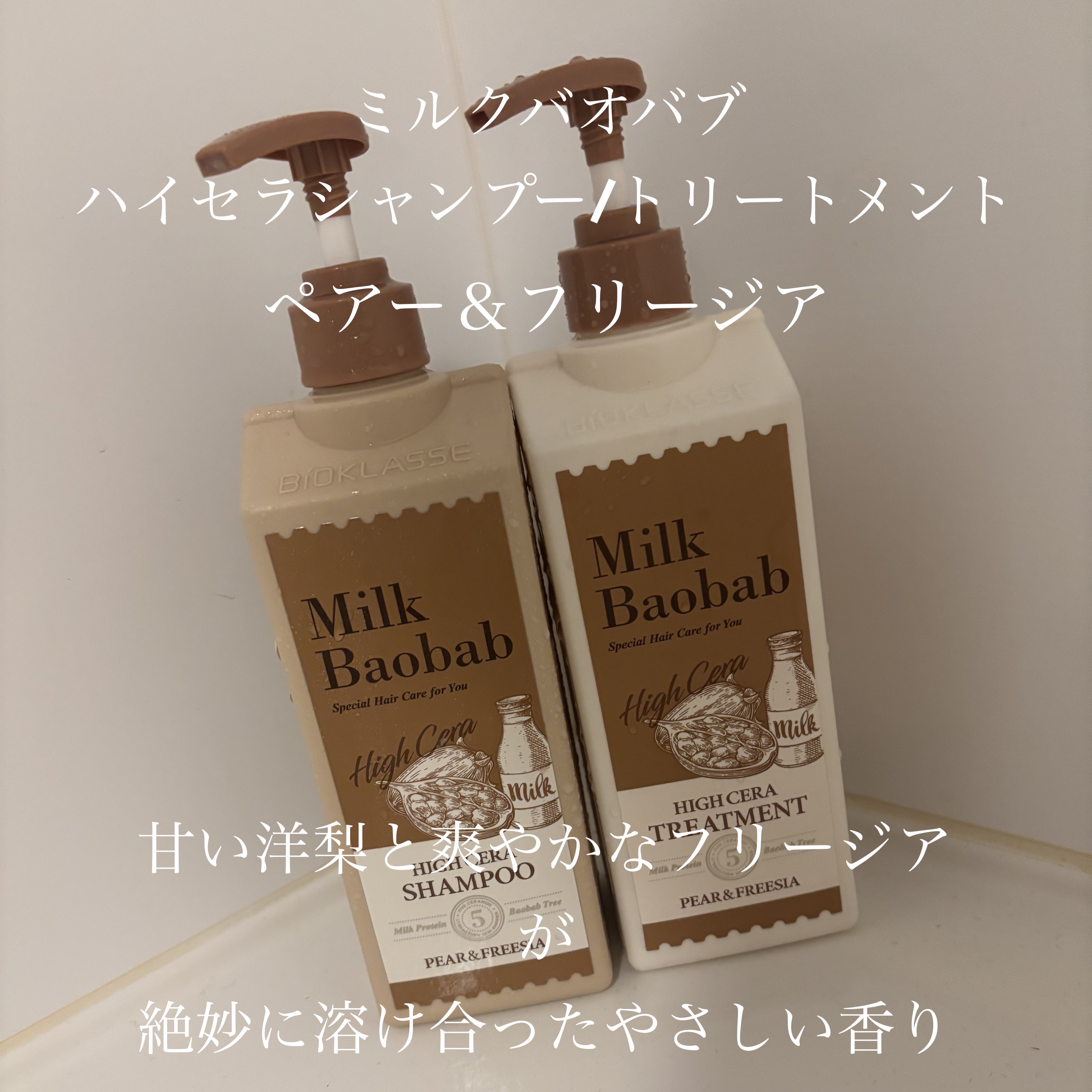 【ミルクバオバブハイセラシャンプー/トリートメントペアー&フリージア】韓国ヘア・ボディーケアブランドの#ミルクバオバブ様からハイセラシャンプーとハイセラトリートメントのペアー&フリージアをいただきました!洋梨とお花の香りが高級フレグランスのよ...