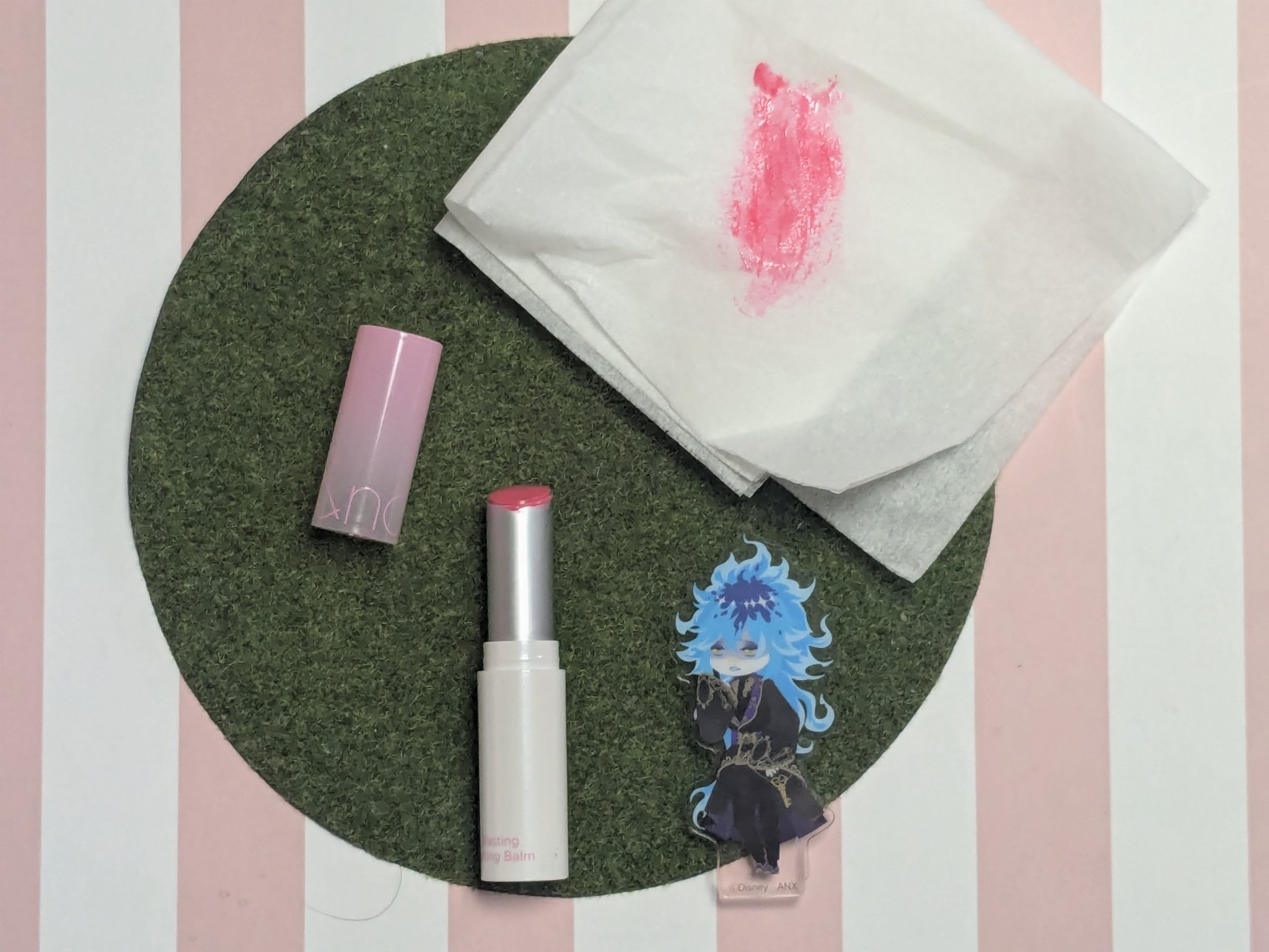 いいじゃないか!いいじゃないか!たまには「.°⑅ʚゆめかわɞ⑅°.」な色に憧れを覚えても!いいじゃないか!いいじゃないか!というわけで、可愛さにつられてロムアンドのグラスティングメルティングバーム09ピオニーズを買いました。可愛いじゃん!ゆめかわピンク!ティッシュに出したら蛍光ピンクに見えるけど!!ねっっっちりテクスチャの本品なので、色が変色しにくく可愛いピンクを維持してくれるのかなーと期待して買ったのですが、確かに塗ってすぐは可愛いです。青みピンクで、かと言って悪目立ちもしないゆるふわカラー。「おっええやん(👍˙-˙)👍」と無表情で喜んでいたのですが、やっぱり時間経過で変色して落ち着いた色になってしまいました。やだー!元のピンクになれー!!と重ね塗りすると濃くなって悪化の一途を辿るので、とりあえずゆるふわピンクは諦める羽目に。どちくしょうめ。まぁ、落ち着いた色はTPO問わず使いやすい色味なのでいいっちゃーいいんですが、私は塗りつぶす勢いでピンクにしたかったのです…相変わらずねっちりして、なにかに触れると秒で色移りしますが、このどっしりした縦じわ?知らんな!とばかりのテクスチャはこれからの時期に頼りになります。寒空の下、原付で走る時とかに。冬に備えるのじゃ、秋は死んだ。#rom&nd#ロムアンド#グラスティングメルティングバーム#ピオニーズ#ブルベリップ#新シーズンあか抜け計画