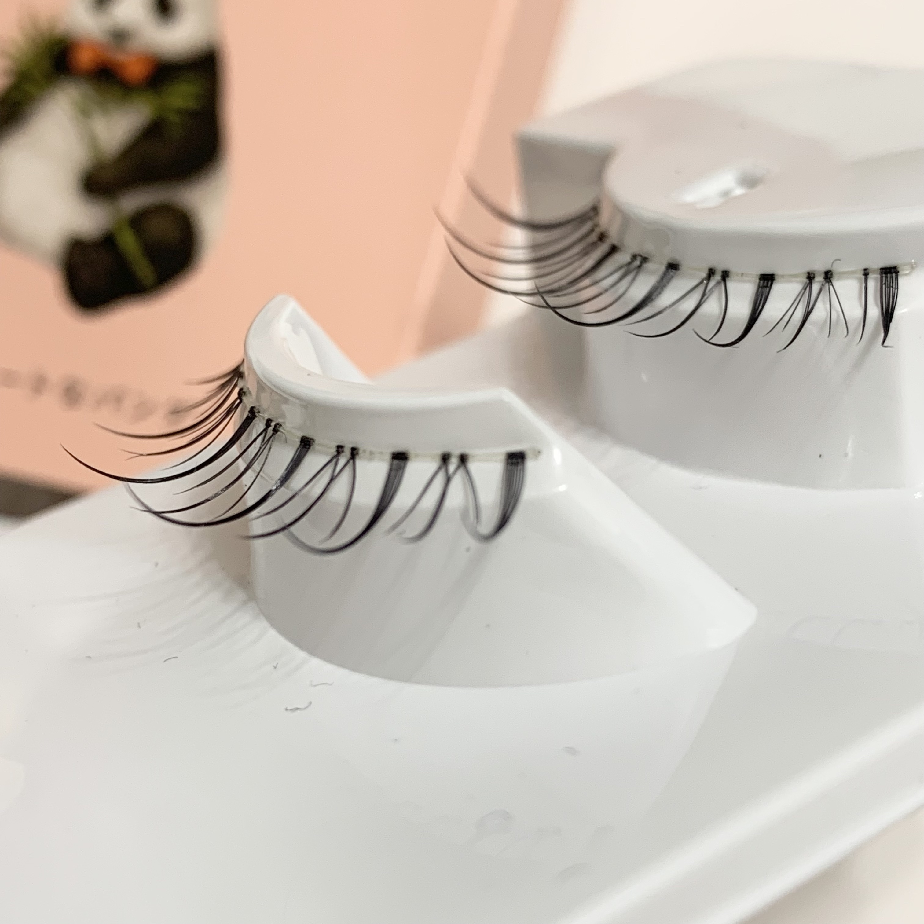 束感キュートなパンダ🐼ナチュラルだけど盛れる!束感まつ毛ぴょんぴょん、と間隔が空いて長いまつ毛に見せてくれるので憧れの束感まつげに!!マスカラを塗ってピンセットで形を作って…という工程がめんどうな私にはぴったり🫶少し短いまつげの部分もあるので馴染んでくれてデイリー使いにも◎友達にもそれつけまつげなの!?って聞かれるくらい自然なのでおすすめです♡2セット入っているのも嬉しいです🙆♀️#梅雨の儚げメイク