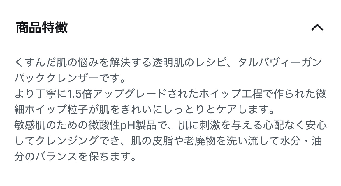 商品詳細情報ヴィーガンパッククレンザー タルバ
