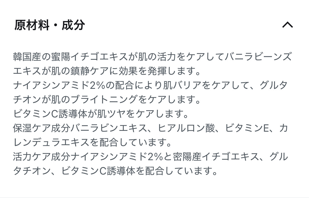 - 韓国苺*+バニラビーンズ*+ベルガモット*使用、くすみ**が悩みの敏感肌&乾燥肌。 *保湿成分**古い角質による