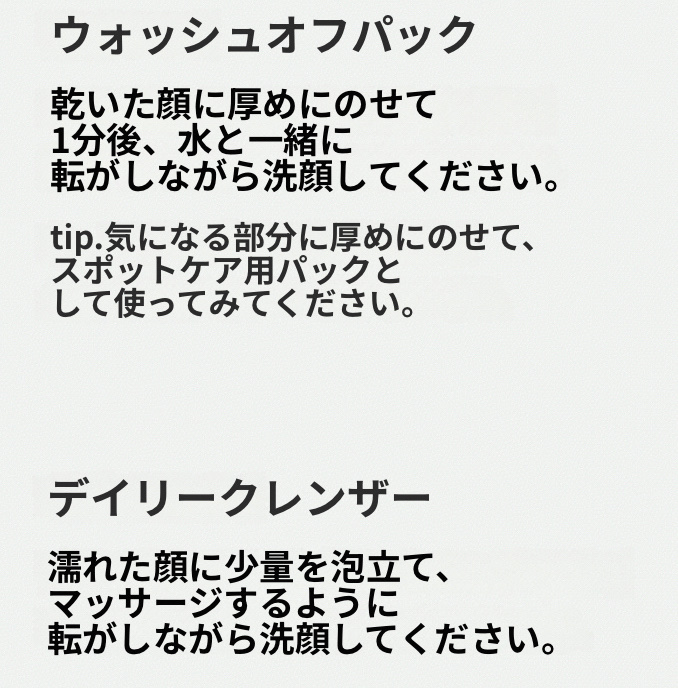 こちらは、洗い流すタイプのパック、ファンデーションや日焼け止めも落とせるダブル洗顔不要のクレンジング、保湿効果のあるスキンケアとして、多目的な効果のあるパッククレンザーです。 クレンザーを手に取るとふわふわで柔らかく、少量のクレンザーでたくさん泡が出来ました。汚れもしっかり取れますが、スキンケア効果があるので、洗い上がりはしっとり。 タルバは酸味のある苺の香りが、とても癒されました。