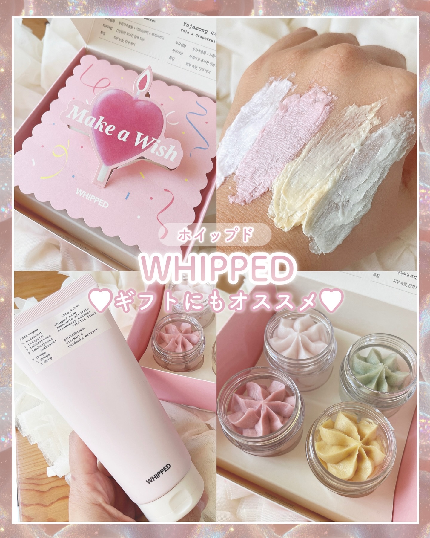 ㅤㅤㅤㅤㅤㅤㅤㅤㅤㅤWHIPPED@whipped._jp韓国カカオギフトランキング1位のベストセラーアイテム💝.ᐟ.ᐟホイップドヴィーガンパッククレンザーディスカバリーキット🎂💞ホイップドのこのまるでホイップクリームを絞ったようなパッケージが可愛いすぎるの💗✨実はこれねパックとクレンジングが一気にできるクレンザーなんだよ˗ˏˋ⭐️ˎˊ˗肌タイプと肌の状態に合わせて使い分けできる4種入り♡♡♡まずはお試しで使ってみるのもオススメ💕水分と栄養成分が50%以上配合されていて洗い上がりもつっぱらずにしっとり気持ちよく使えるからお気に入り♡🌼洗顔料として使う場合は人差し指ですくえるくらいの量を取ってよく泡立ててから濡れた顔に30秒以上かけてマッサージして洗い流す🫧🌼パックとして使う場合は濡れてない顔に厚めに塗って約1分置いたらマッサージしながら洗い流す☺︎ダブル洗顔などは必要ないけどウォータープルーフを使用している場合は専用リムーバーなどで落としてから使用してね⋆┈┈┈┈┈┈┈┈┈┈┈┈┈┈┈┈┈⋆ギフトにぴったりなアイテムだから気になった方は是非チェックしてね🎀#PR#whipped#ホイップド#ヴィーガンパッククレンザー#Qoo10#Qoo10メガポ#おすすめ#ギフト