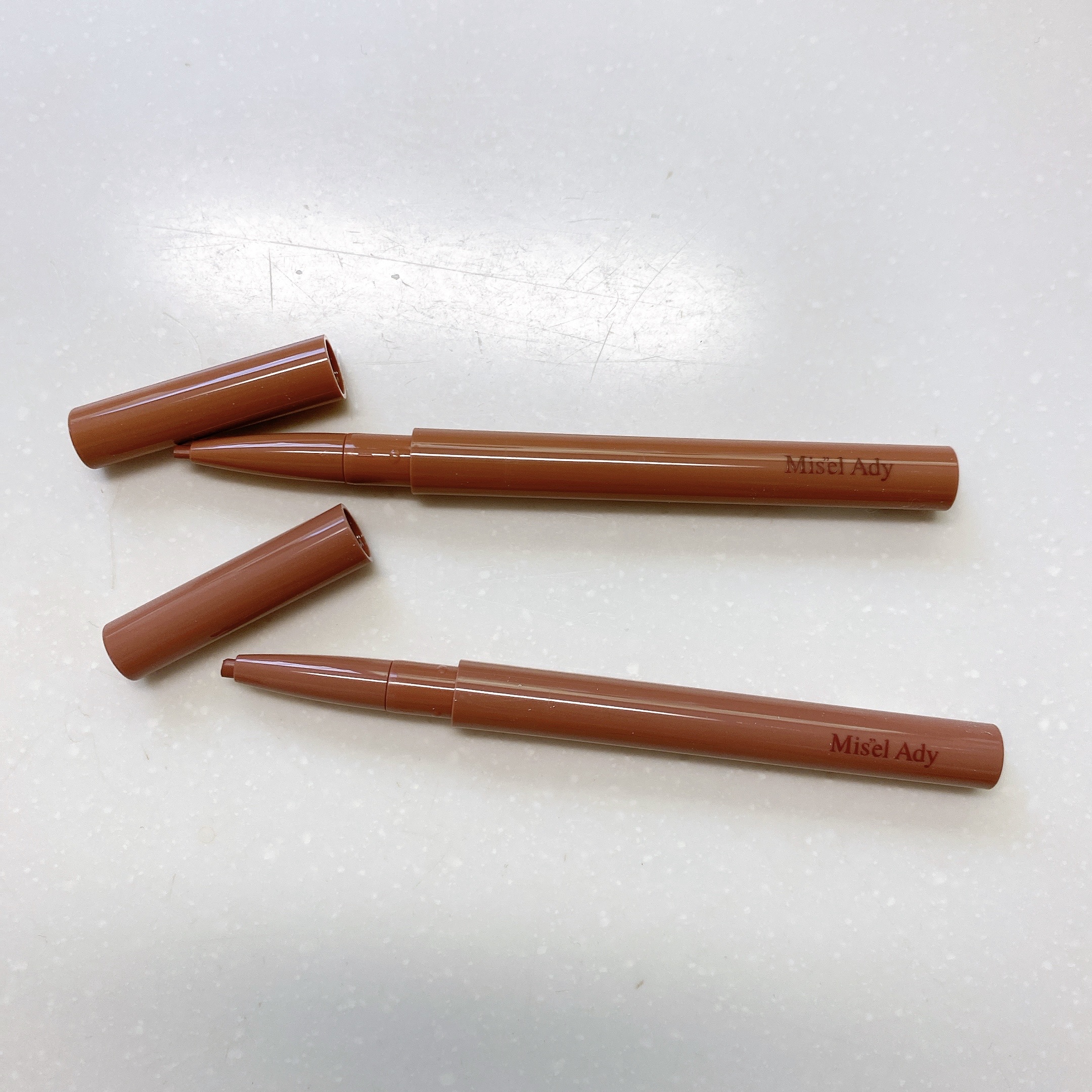 ミゼルエディ忍ばせ影色ペンシル/201 オレンジブラウン202 ピンクブラウンナチュラルに盛れる!!馴染みのいい茶色系だけどしっかりカラーも感じるちょうどいいアイテムです!!#Myあか抜け記録#わたしの仕込み美容#差がつくひと手間グッズ
