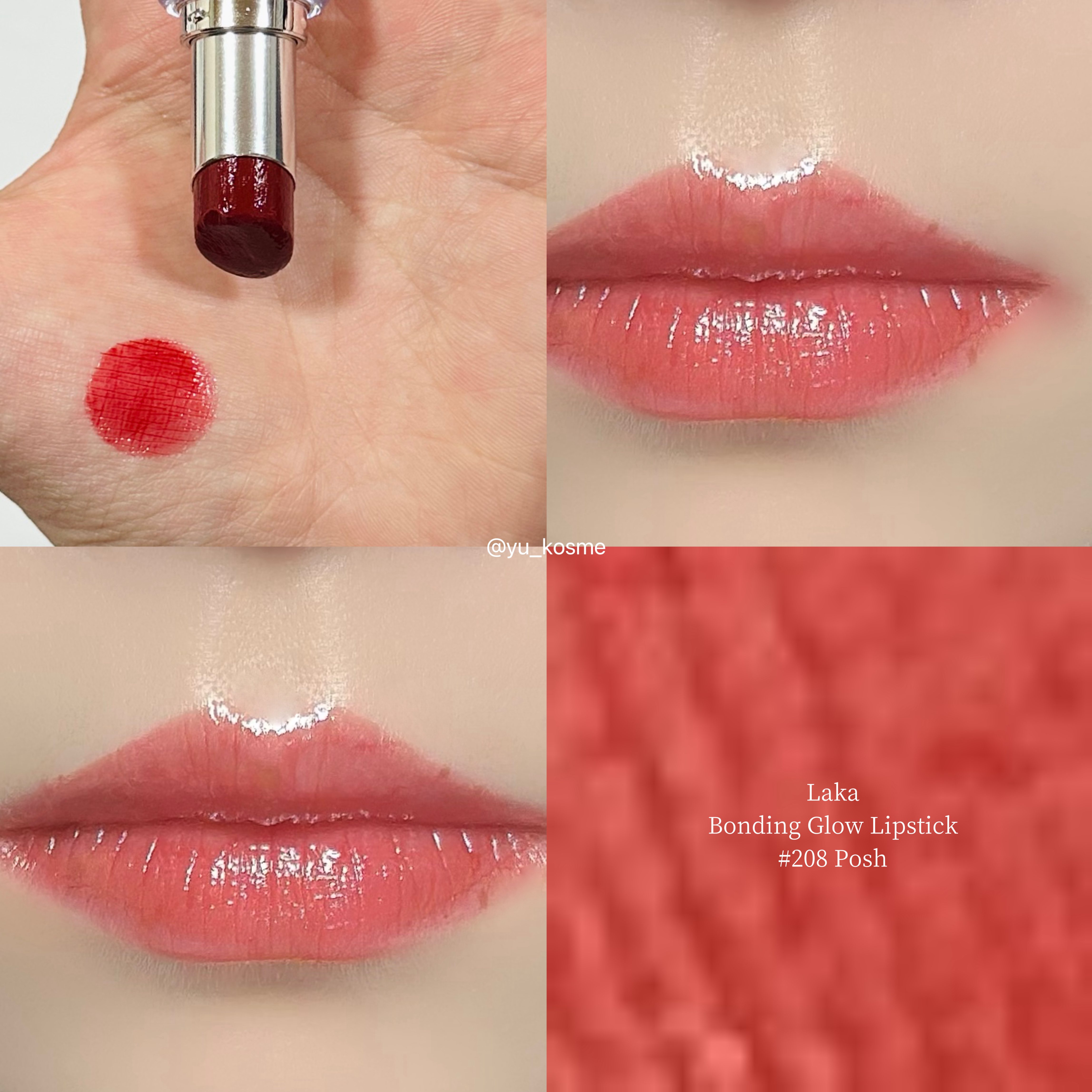 \透け感たっぷり🫧赤リップ❤️🔥/♡LakaBondingGlowLipstick208Posh透け感たっぷり、シアーな発色の赤リップ。ただ青みのある赤色で、いつもより肌が白く見える🤍スティックタイプでするする塗れる柔らかいテクスチャー。ガ...