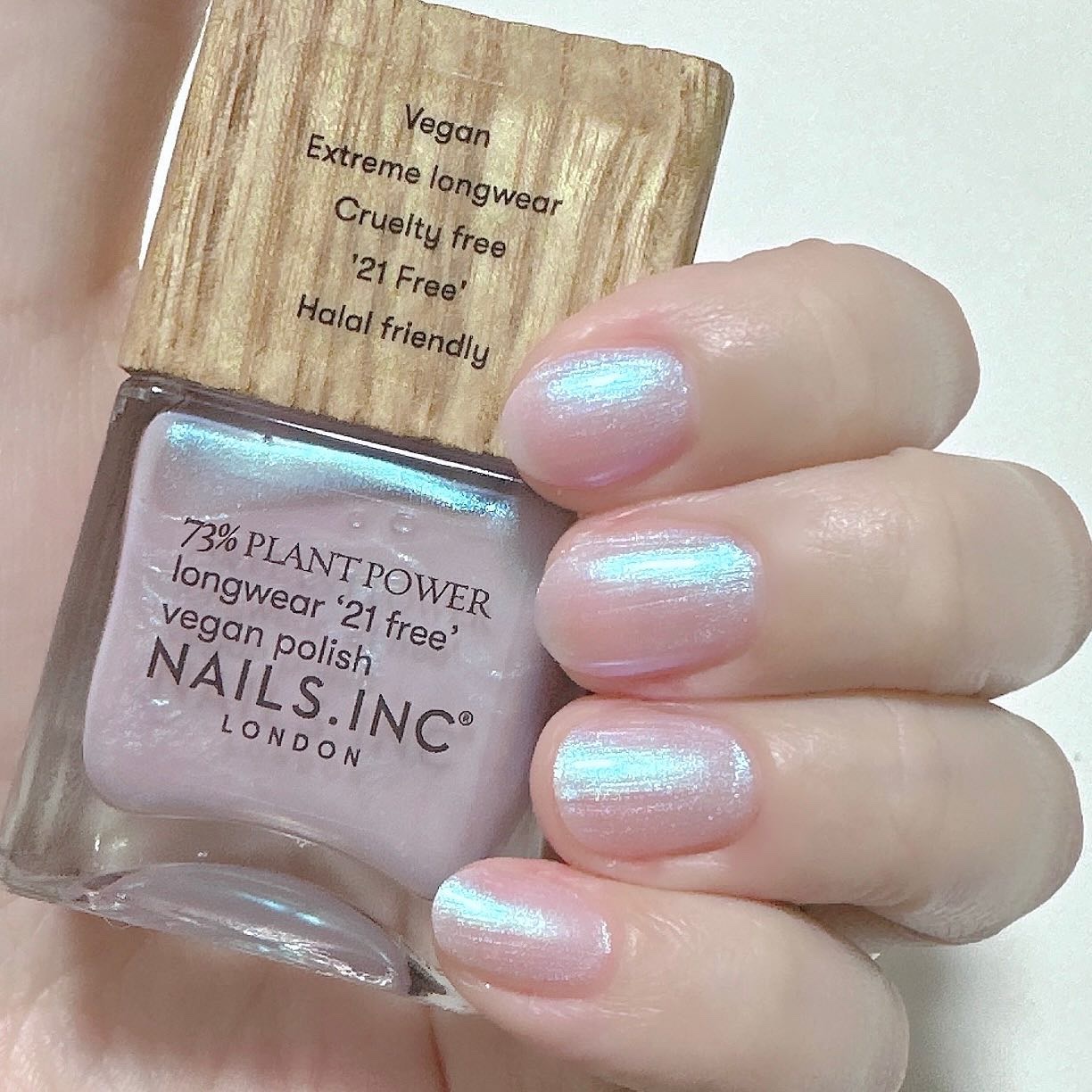 ネイルズインクのポリッシュデビューはこの子でした🩷 ラベンダーオーロラカラーとか、もう買わない理由が見つからない!! キャップも木製でパケすらかわいくない!? そしてこのキャップ…実は指を置いてポリッシュを塗るのにも使えるの知ってた? だから真ん中凹んでるんだ!! デザインのかわいさだけじゃないんだ!! 乾きは手持ちのブランドの中ではゆっくりめに感じたので、いつもより気長に待ち時間を取って就寝…💤 翌朝起きてもお布団の跡がついたりすることなく大丈夫でした!!