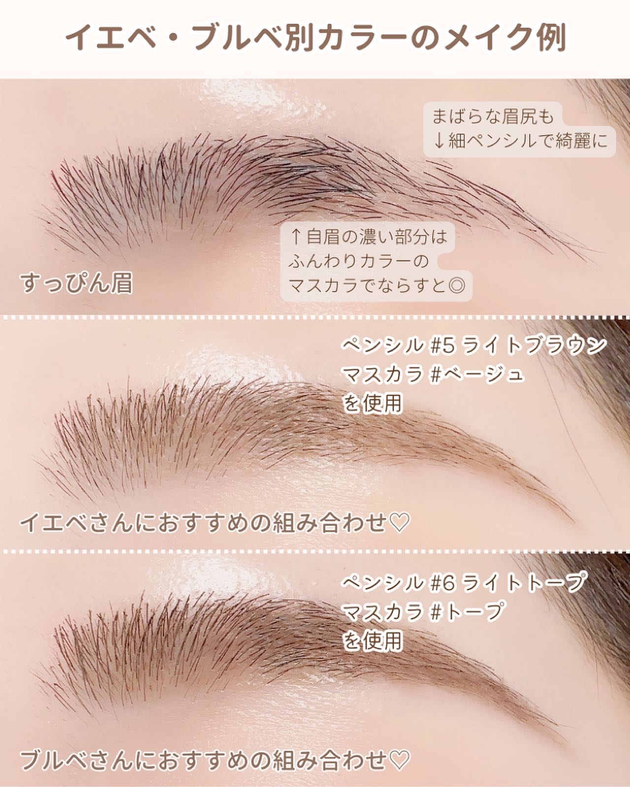 espoirのアイブロウ新色がいい感じ❤️espoirの眉ペンシル「ザブロウバランスペンシル」は細くて芯が柔らかすぎず硬すぎずちょうど良い発色になるので以前から大好きなんですが…最近出た新色がまたとっても使いやすい色味で2色とも購入~~~🥺✨色味自体が明るめで既存色以上にふんわりナチュラルに仕上がります🤍これまで1番のベーシックなクラシックブラウンという色をすでに3本ほどリピしてたんですが、新色出てからは5番&6番に乗り換え中🥹💕🌸5ライトブラウン赤み控えめの黄み寄り。ブラウンといってもかなり明るくベージュ系。眉色ワントーン上げたいイエベさんにおすすめ💛🌸6ライトトープ黄みを抑えたソフトアッシュ系。ブルベさんのデイリーブラウンとしておすすめ💙落ち着いた眉色にしたいイエベさんも使える色味🙆♀️それぞれ、あわせて出ているアイブロウマスカラ「ザブロウカラーフィッシングカラー」と一緒に使うのがおすすめ🙆♀️🤎ペンシル5番はマスカラの「ベージュ」ペンシル6番はマスカラの「トープ」と相性ぴったりです🎀✨もともと眉メイクすっごく苦手だったんですが最近は眉褒められることも増えてきて🤍そんな私の眉はもう1年以上?espoir製😂💕なんかいまいち眉メイク定まらないな~~~という人はぜひespoir使ってみてほしいです🤍🤍🤍#エスポア#眉#眉マスカラ#眉毛メイク#眉メイク#イエベメイク#イエベ春メイク#イエベ秋メイク#ブルベメイク#ブルベ夏メイク#ブルベ冬メイク#パーソナルカラー#韓国コスメ#新作コスメ徹底レビュー