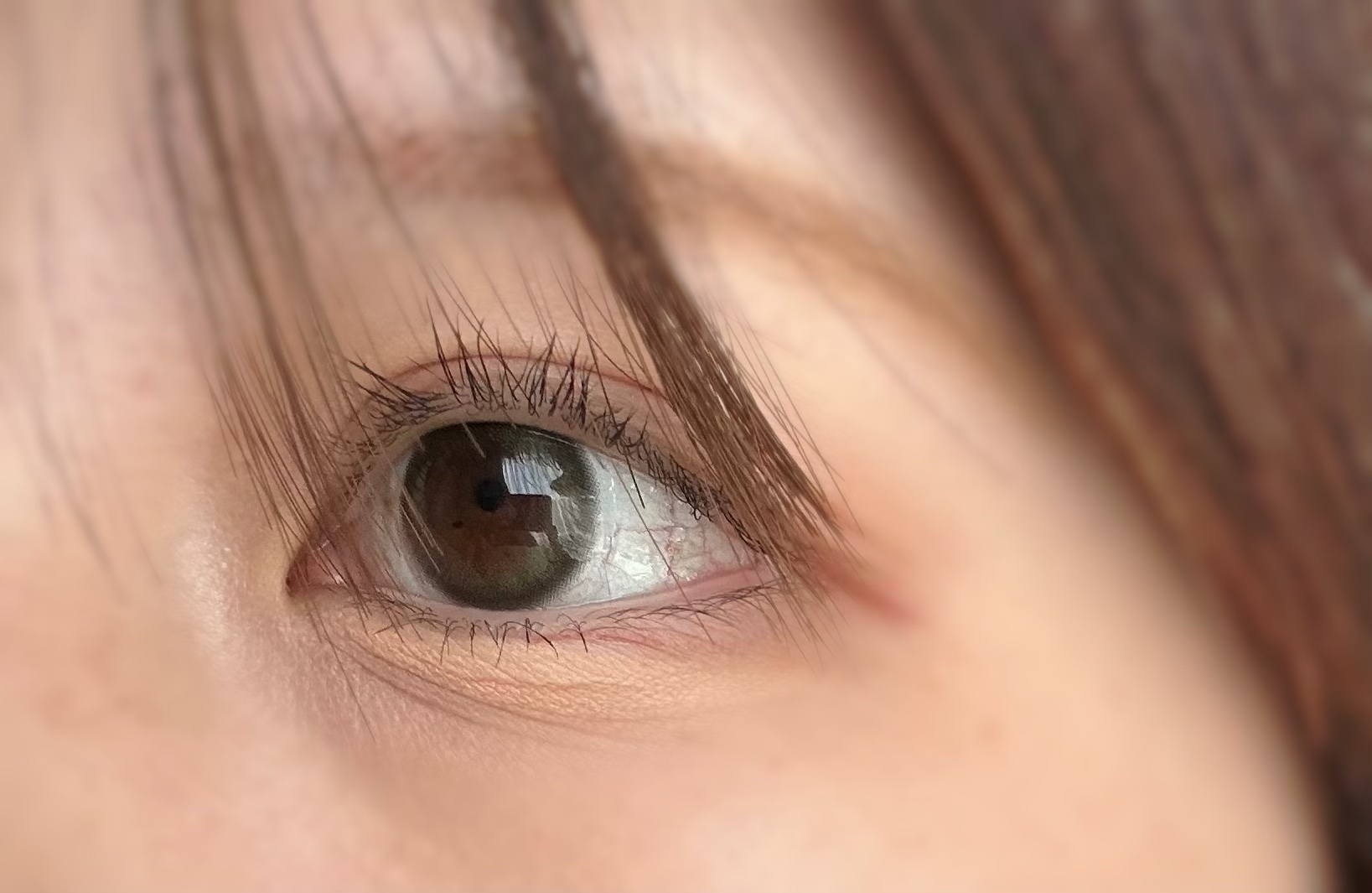 瞳にツヤ&光をまとう水光デザイン ハイライトカラーが生むバランスで まるで瞳に光を閉じ込めたような 透明感のある瞳に♡ 着色直径13.1mm 瞳になじみ、よりナチュラルな印象に。 ハイライト効果 瞳に自然なツヤを仕込み、ハイライトを入れたような立体的な目元に。 ナチュラル水光デザイン さりげない水光デザインなので、レンズが回ってしまっても不自然にならない♡ ティアーオリーブはグロスブラウンよりもさらに透明感が出る印象です! レンズの向きが左右バラバラでもおかしくないので、特に向きのことは考えずに装着しました! 初めての水光レンズでドキドキでしたが、 どちらもちゅるんと透明感の出る色・デザインで、 しかもとても自然な仕上がりでした! 瞳に馴染みやすいデザインなので、私のように初めて水光レンズを使う人にもおすすめです!