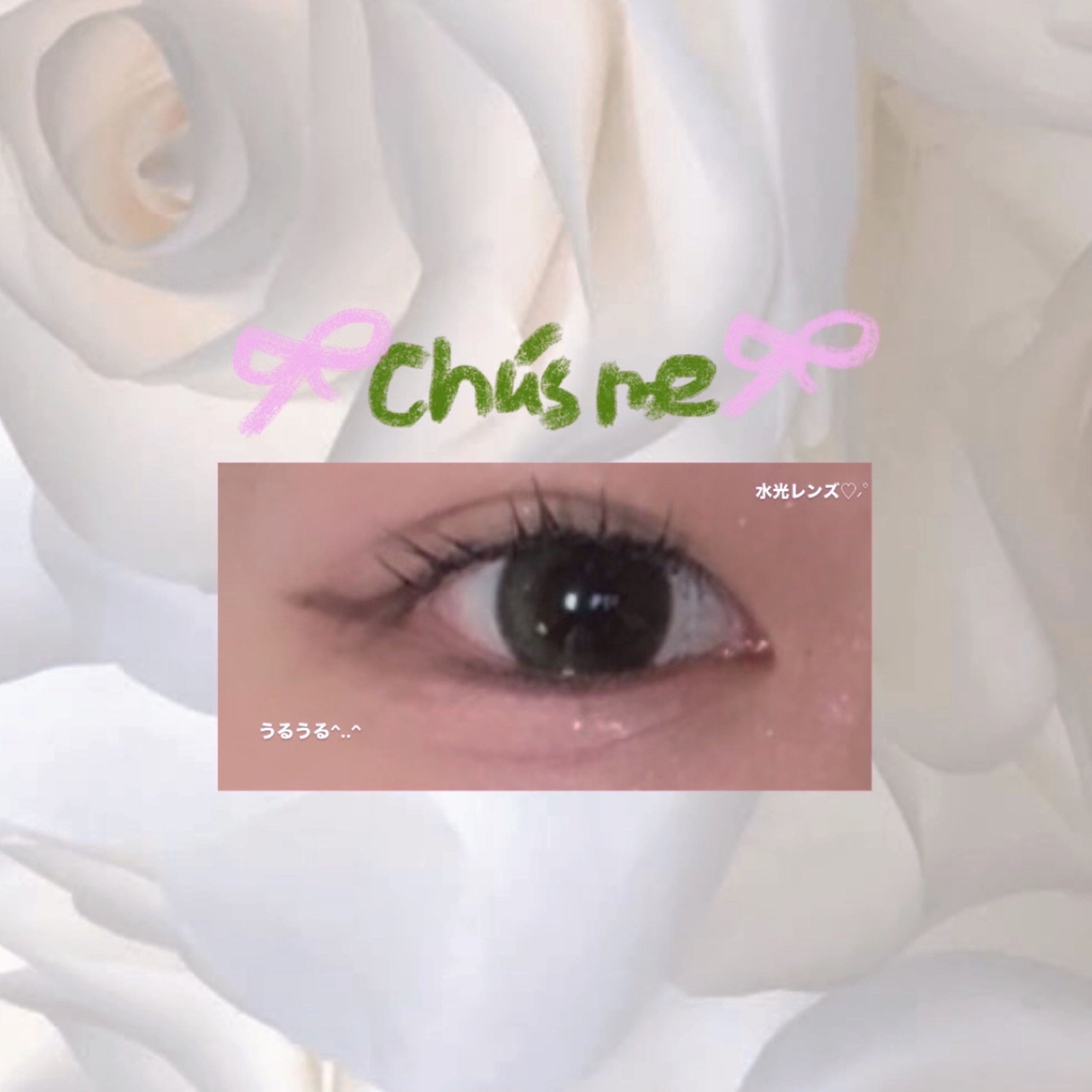 Chu'smeティアーオリーブ*.𝝑𝝔裸眼黒目です。水光の光の部分が瞼に隠れると、かなりナチュラルに見えます。くるくる回っても変に目立たずに可愛いです。ナチュラルに盛りたい黒目さんにおすすめです。#チューズミー