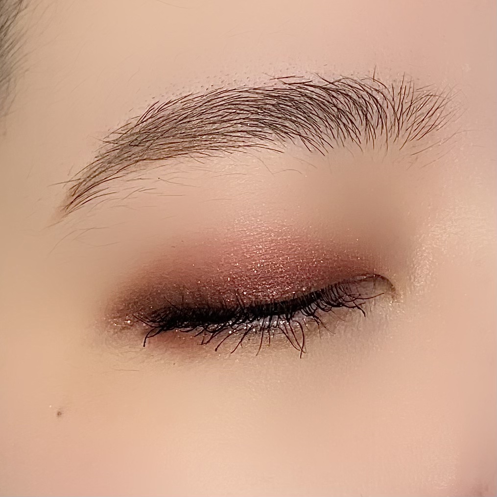 美しい色味が四色並ぶなか、グレーラメとピンクラメが両立というのはレア。 甘々とした目元に少しの黒さを入れることによって全体が締まります。 女性にももちろん、男性にも使いやすいカラー