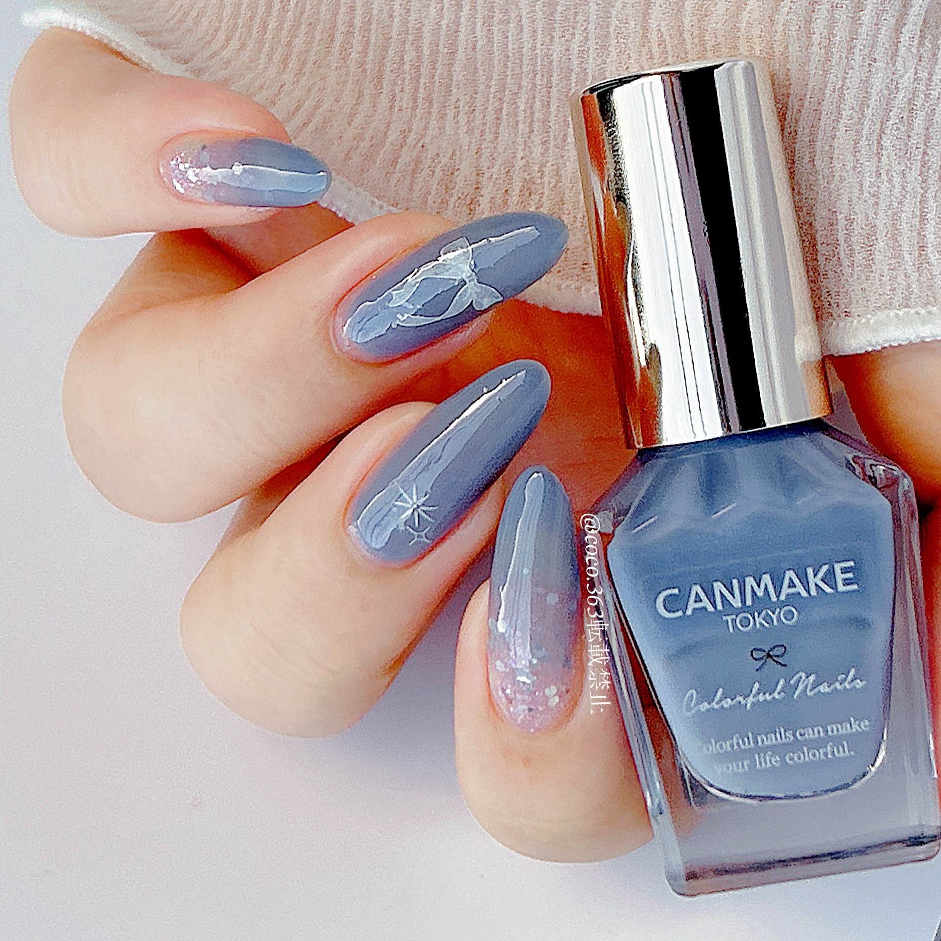 100均・プチプラアイテムで簡単サロン級💅🏻淡く儚げな冬ネイルデザインまとめ❄️.*˚︎︎︎︎︎︎☑︎詳細は2枚目からの画像でどうぞキャンメイクカラフルネイルズ¥396〚N82クラウドレススカイ〛〚N103アストロノミー〛〚N106アスタロイ...