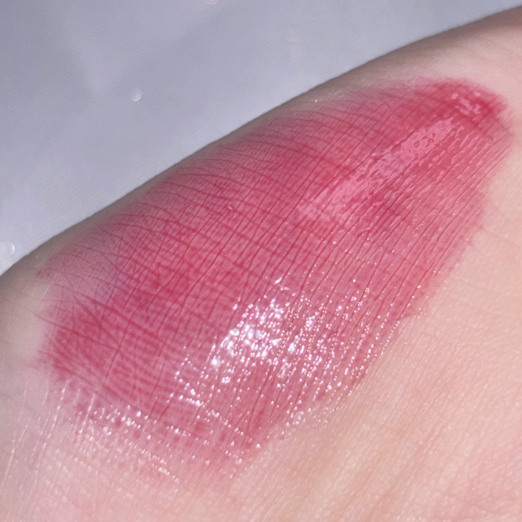 容器が面白くて、開けるとニュニュッ!と自らぬってくれー!と言わんばかりに出てきてくれます😂 かわいい見た目、というよりもガラスのような基調でクールな見た目なのでかっこいい系の服着てる時に持ち歩いてても似合うような、このパッケージ好きだなーと思いました⸜(*ˊᵕˋ* )⸝🎵 日本にはなかなかない発色、プルンッとした見た目、色持ちもそこそこ、変に乾かない