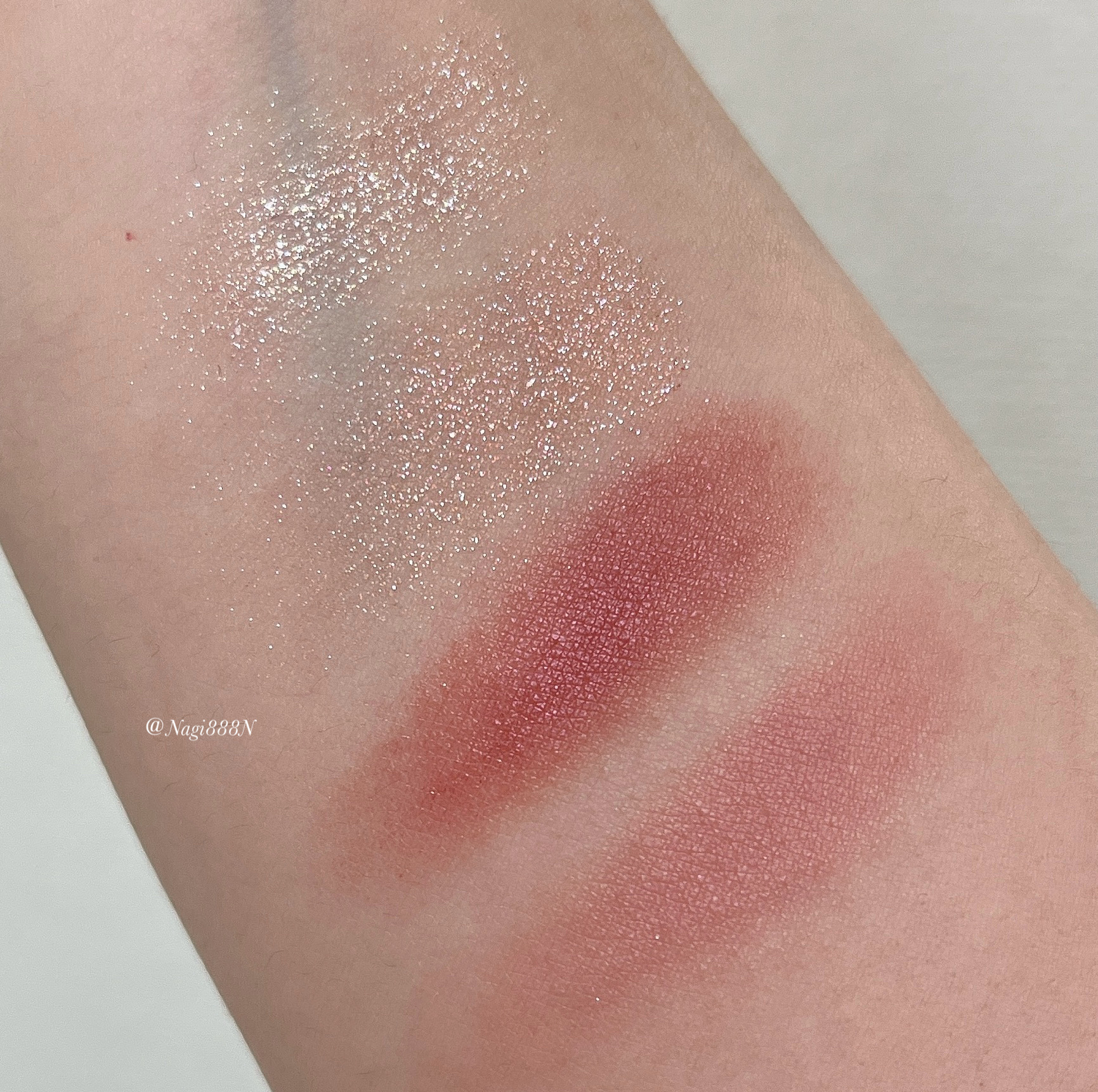 しっとりふわっとしたテクスチャで、肌にピッタリと密着します✨ 500番のカラーはイエベさんにぴったりのピンクカラーで秋にヘビロテしたくなること間違いなしのカラー🥹 下の二つのカラーは、マットとは書いてありますが、控えめなシマーシャドウな感じで、色が濃くても重たさを感じさせません👍 そしてなによりこのダイヤモンド発想のラメの輝き…!唯一無二の美しさです😮💨✨ ラメも粉とびすることなく、ふわっと肌に密着します☺️