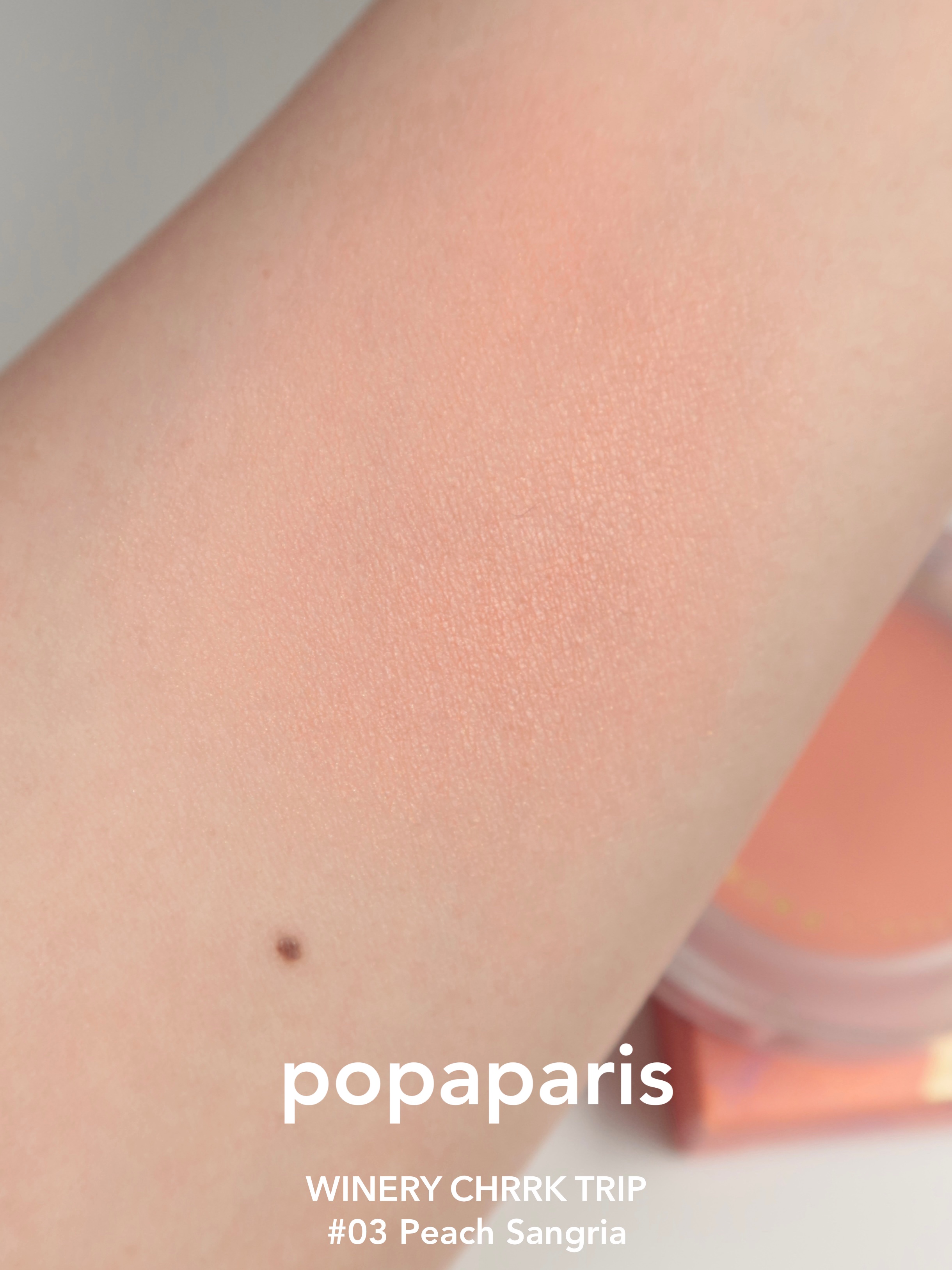 POPAPARIS©︎ポパパリワイナリーチークトリップ#03ピーチシャングリアシマータイプでフレッシュ感溢れるアプリコットオレンジ。透明感のある肌へ導いてくれて、ピッタリフィットするチーク🧡肌も自然に血色良く見てせくれます✨️微細な粒子で、一度塗りも重ね塗りも、ムラのない仕上がり.ᐟロングラスティング、シーバームパウダー配合で長時間キープ✨️コンパクトはサイズ感で、持ち運びもしやすいです🥰.ᐟカラーも可愛くてメイクも楽しくなります🫶🏼🤍#韓国コスメ#チーク#ポパパリ#FAUXPASPARIS#ブラッシャー#チークメイク#頬メイク#ビンクメイク#コーラルピンク#オレンジメイク#コーラルメイク#blusher#イエベメイク#ブルベメイク#気分UPコスメ#初夏のオレンジメイク#フォロバ_100