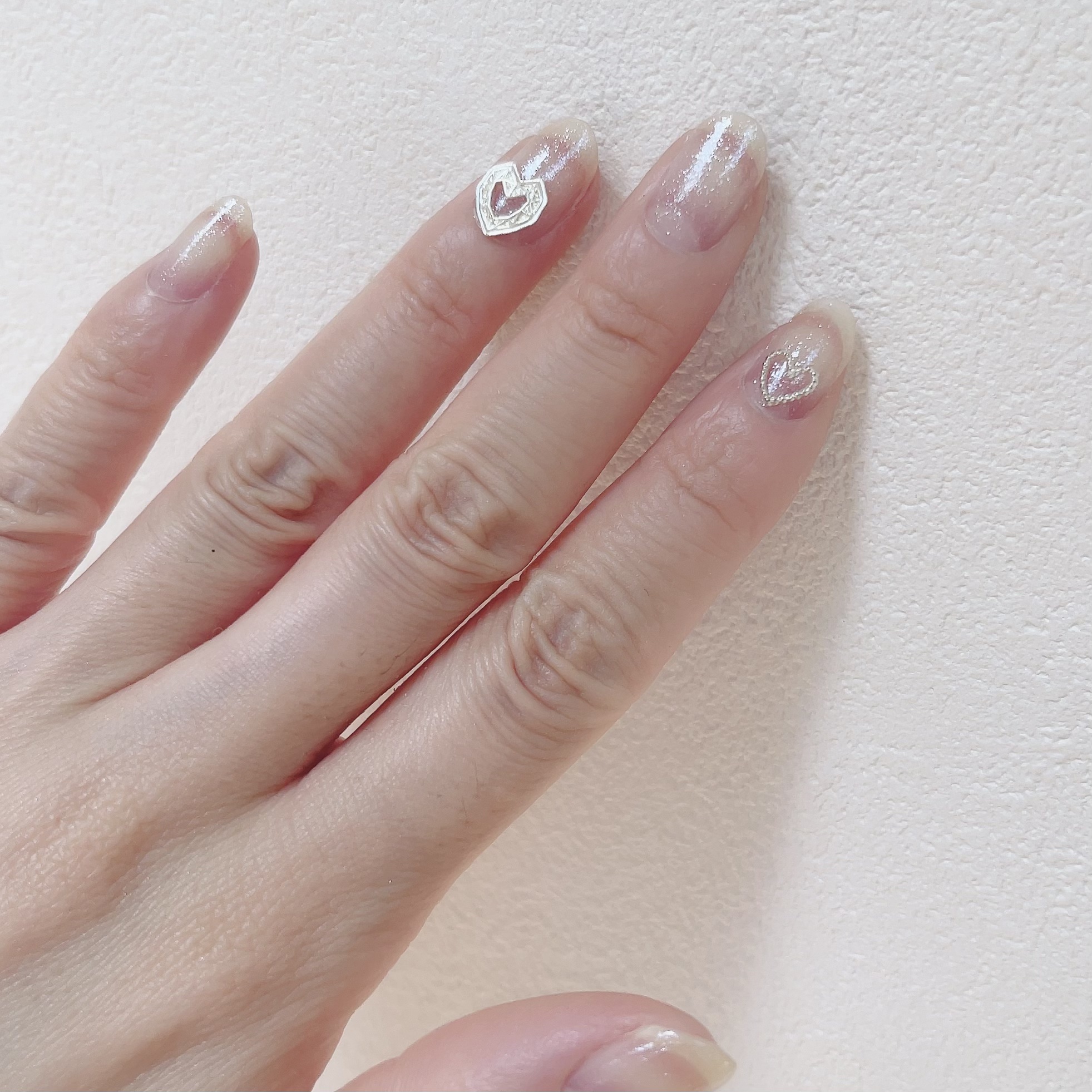 ♡••┈┈┈┈┈┈┈┈••♡Dear.AシャインオンミーネイルカラーSE22ムーンライトスパークルズ♡••┈┈┈┈┈┈┈┈••♡透明なベースに繊細なラメ感があるネイルです✨ボトルもオシャレで可愛いー!🩷1度塗りと2度塗りしてあります。2度塗りの方には手持ちのパーツを付けてみました。透明だし、主張し過ぎないキラキラ感なのでとても使いやすいと思います😊他のネイルと組み合わせたりしても可愛いと思います。#ネイル#セルフネイル#韓国コスメ#ラメネイル#ラメグリッター祭り