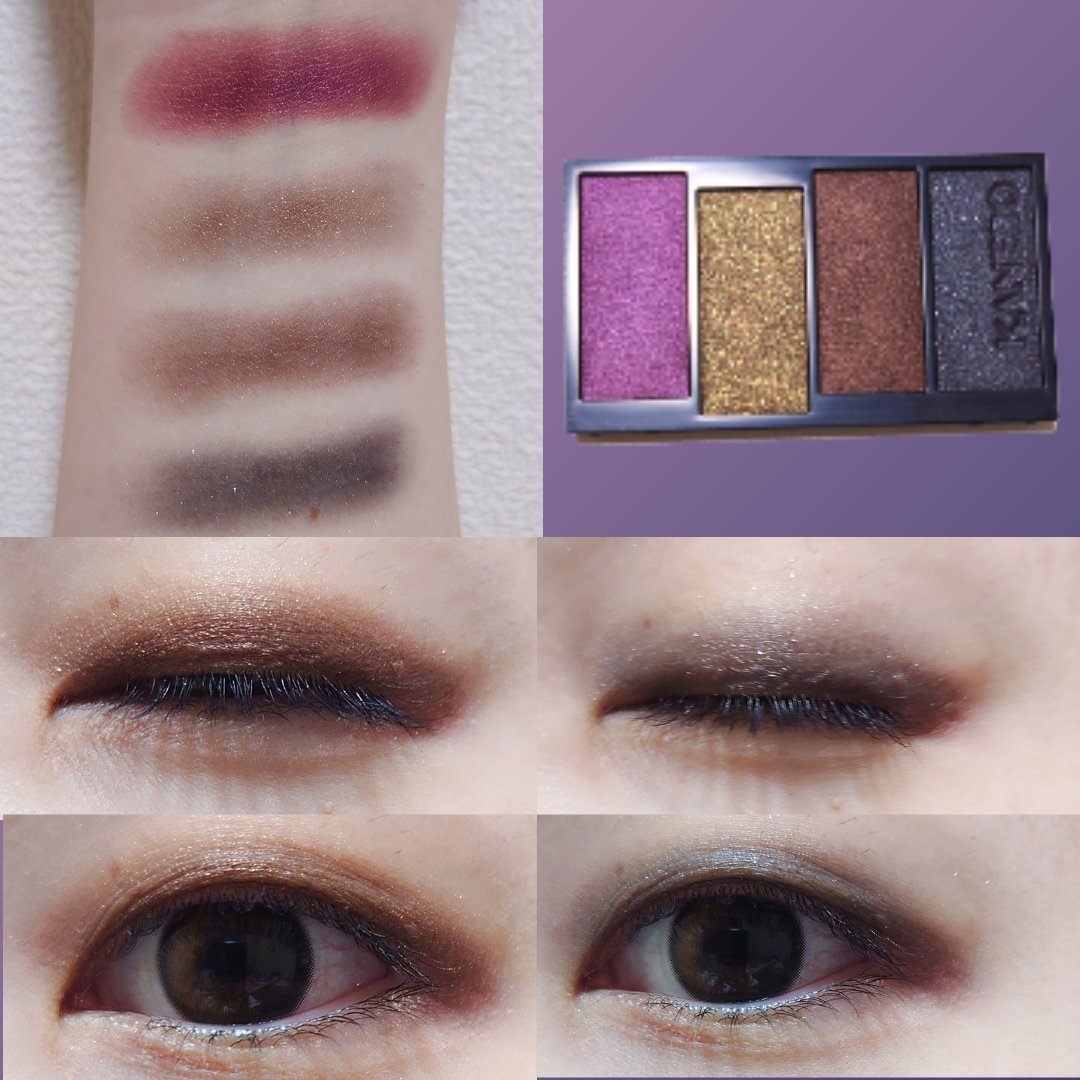 どれも影を別の色にずらして表すという他にない提案のアイシャドウでとっても魅力的なんだけど 4色全部影色!! という思い切った限定色 EX1 Inner Ambition に一目惚れしてしまった🤦🏻♀️✨ 内なる野望をいだいた力強い目元に❣️ ぱっと見ると全部暗いし え、使いこなせるの、、、? と不安になる色だけど さすがKANEBO様、 絶妙に透け感のある影色なので 目の上漆黒!!!にならないのです そしてパープルみのある影色が 色っぽカラーでかわいい💗 いつもと違ったメイクができちゃいます✨✨ 秋冬にもピッタリのカラーだと思います💜 限定だから店舗に残ってたら買えるかな?! ぜひ見つけたらTUしてみてね😊