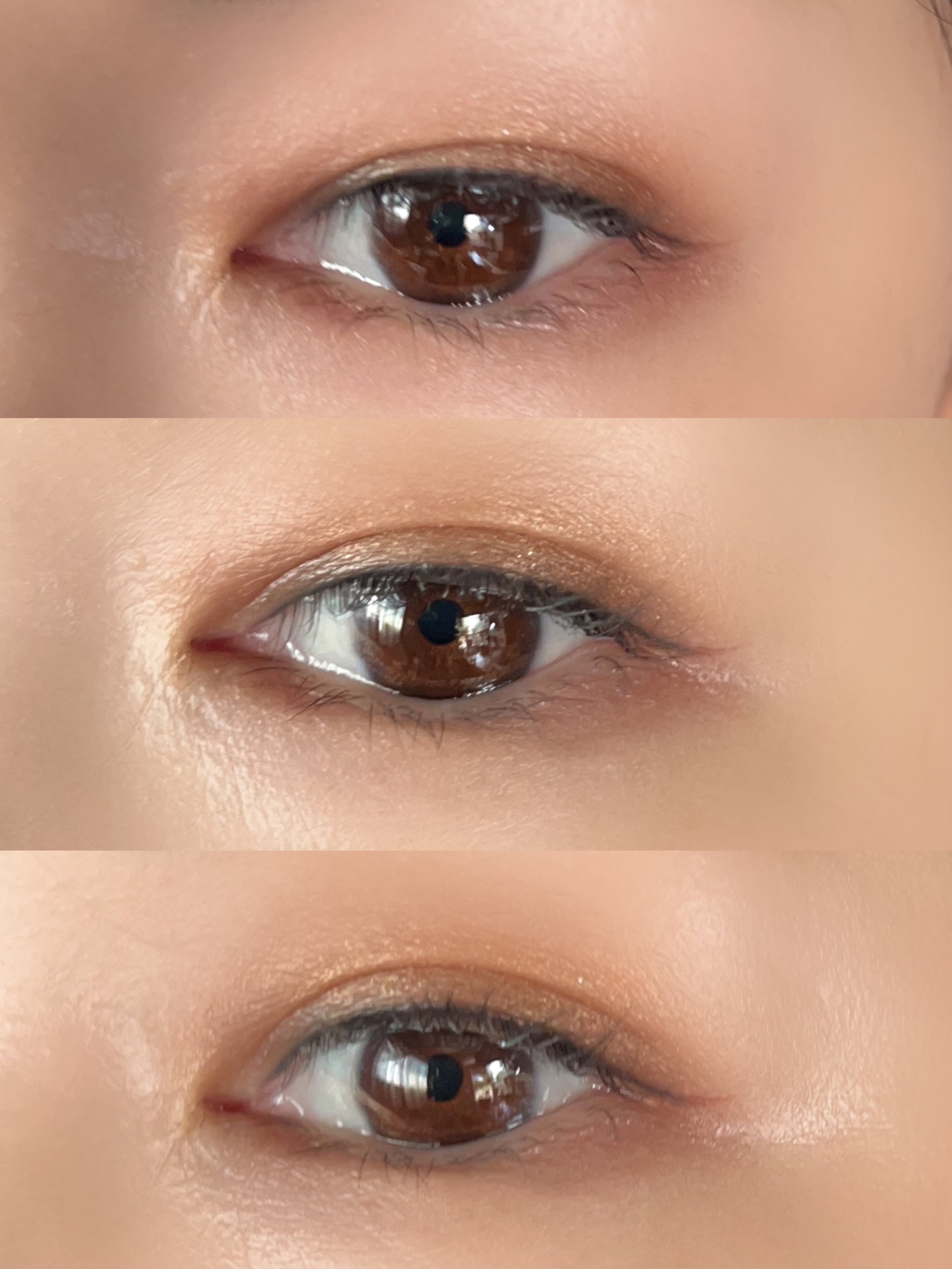 このツヤ感と発色と重ね具合でオシャレな 目元になれる✨️ 腫れぼったい瞼の奥二重な私でも広範囲に 使っても腫れぼったくならない!! 重ねても重くならずむしろ明るい目元に 仕上がります。 そしてグラデーションが自然にできるので 色々な使い方が出来そうです☺️