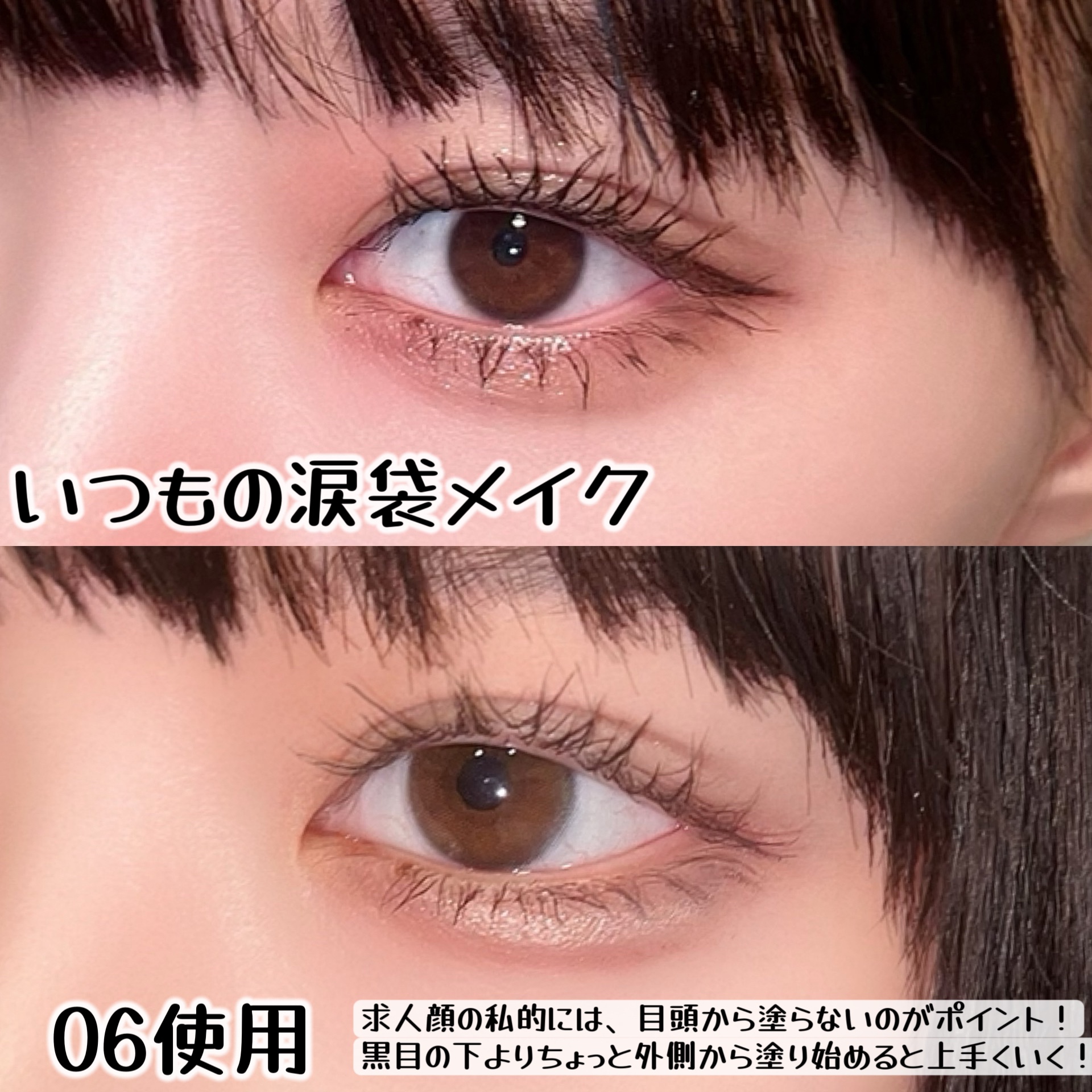 06は涙袋ペンシルとして使っています!! 他の涙袋ペンシルとは違ってボロボロしずらくてスルスルかける超万能アイテムです!♡ 涙袋ペンシル何を買うか迷っている方は是非買ってみてください!! 楽天、キューテンなどで購入可能!