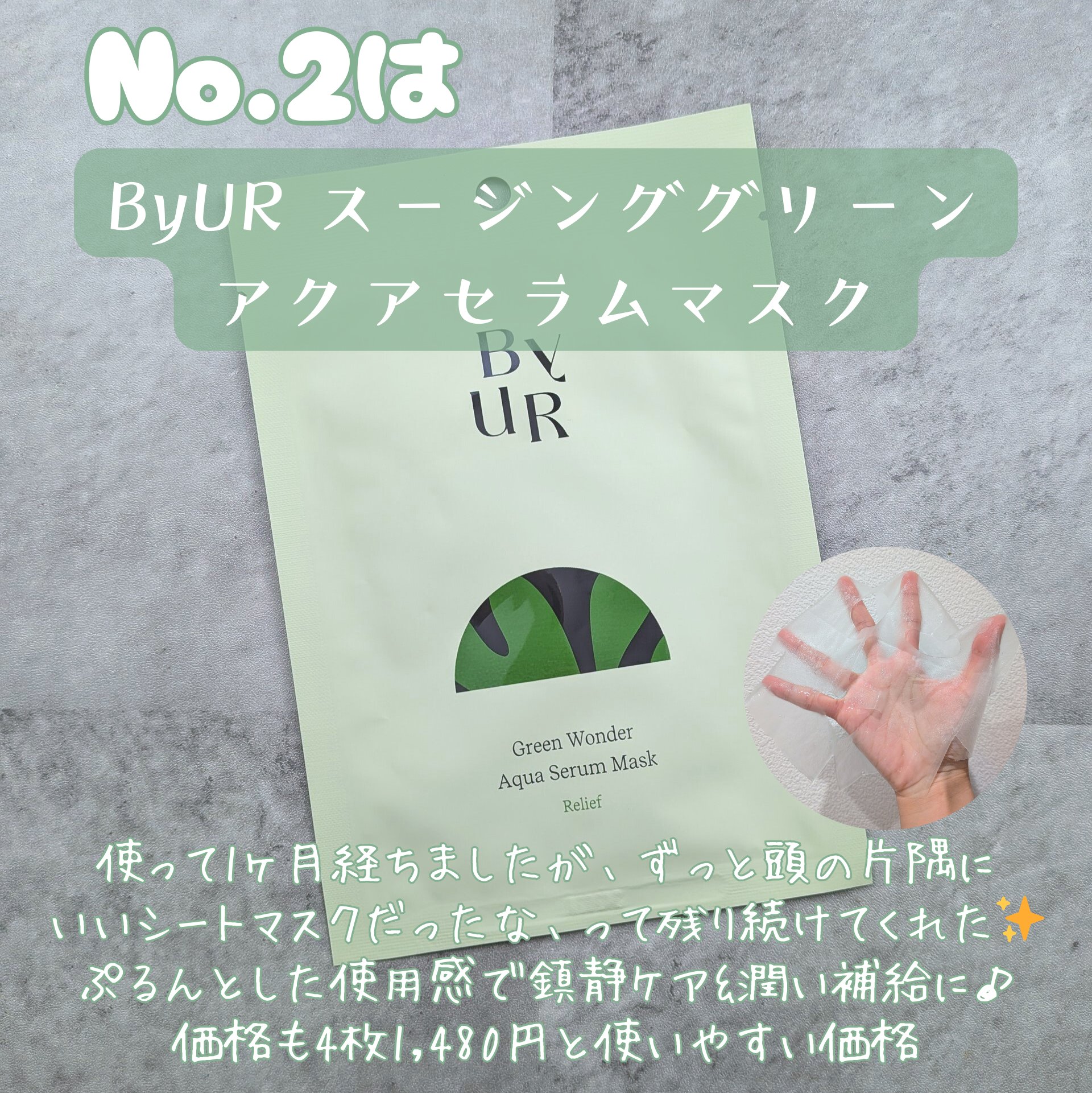 ByUR スージンググリーンアクアセラムマスク保湿効果と翌朝の肌も乾燥しなくて仕上がり自体は気に入っているのですが、シートマスクがジェルっぽく少し貼りにくい印象です💦特に唇周りが少し貼りにくい印象だったのでリピはしないです🤔#ByUR#肌水分...