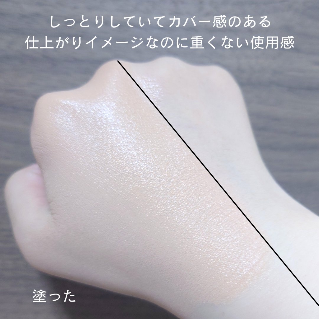 角が立つくらいこっくりしたテクスチャーですが、かなり滑らかな使用感です。 ハイカバーなのに、重すぎない使用感でお気に入り!! 重ねて使えばコンシーラー並みのカバー感で一つあればファンデーションとコンシーラーを賄えて◎
