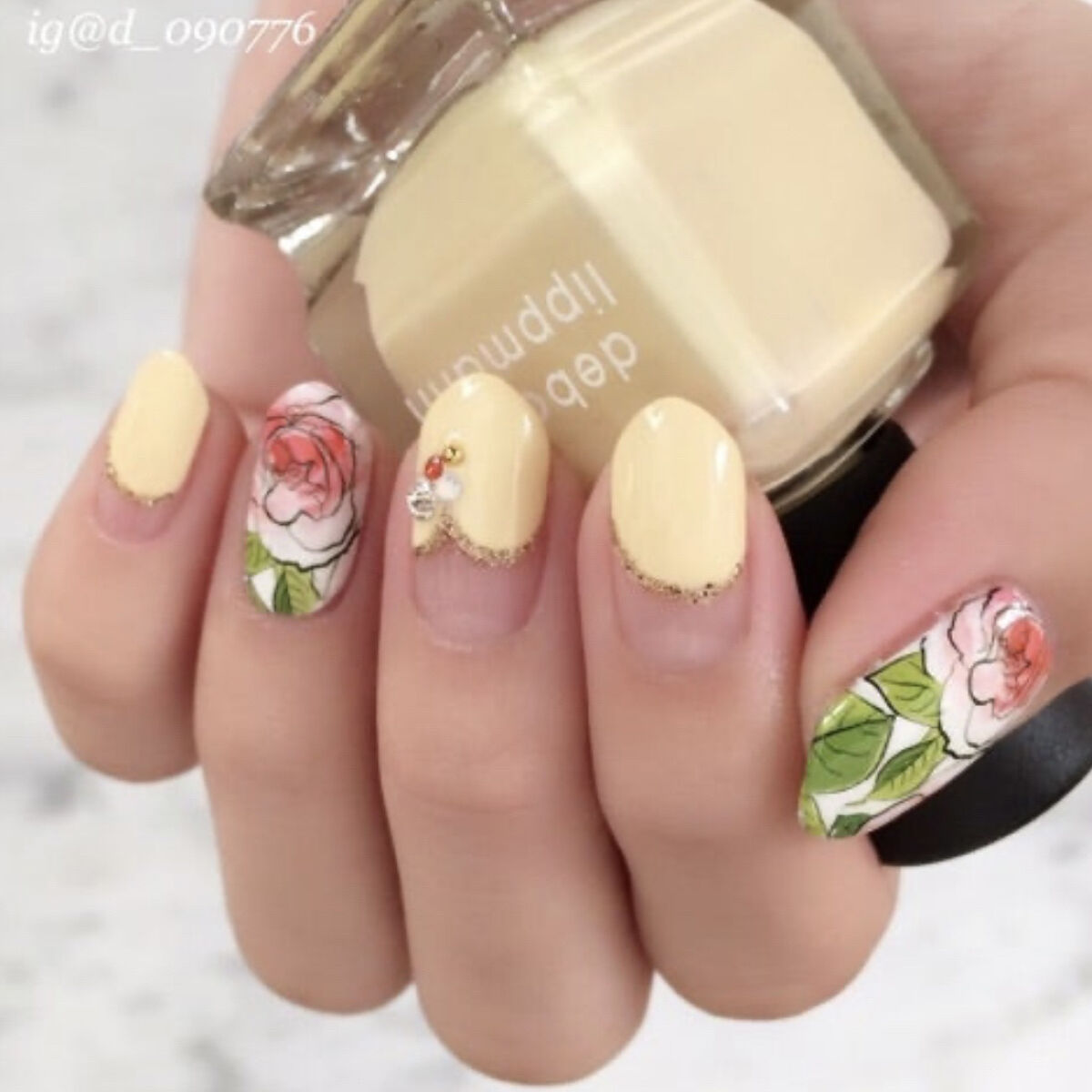 美女と野獣を意識したほんのりディズニーネイル。 クリーミーなパステルイエローが可愛い。 持ちが良くて塗りやすい大好きなネイルブランド🫶 細筆タイプなのでちょっとしたアートに使いやすい。 濃密な白だけど1度塗りはムラになる。 花は春の歌(現born pretty)のウォーターネイルシールを使用。