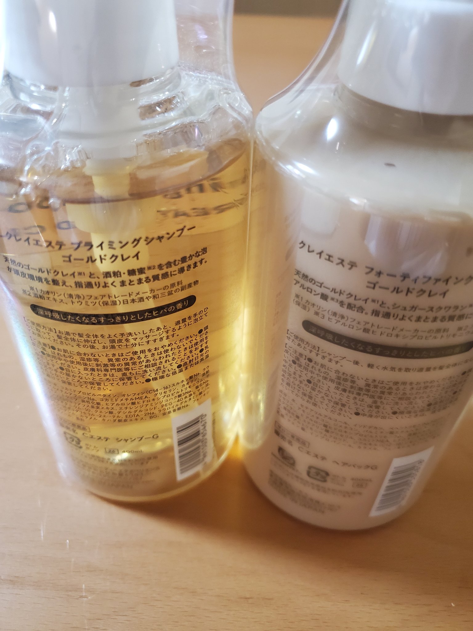 ふわふわヘアーになります。クレイエステプライミングシャンプー/フォーティファイングヘアマスクゴールドクレイシャンプー本体400mlヘアマスク本体400mlお値段だけあって、私の直毛髪が柔らかくなりました。朝のセットもかなり楽です。香りも良くて、乾かすと匂いが飛ぶので使いやすいです。ピンクのタイプは香りが違うそうなので、また試してみたいです。