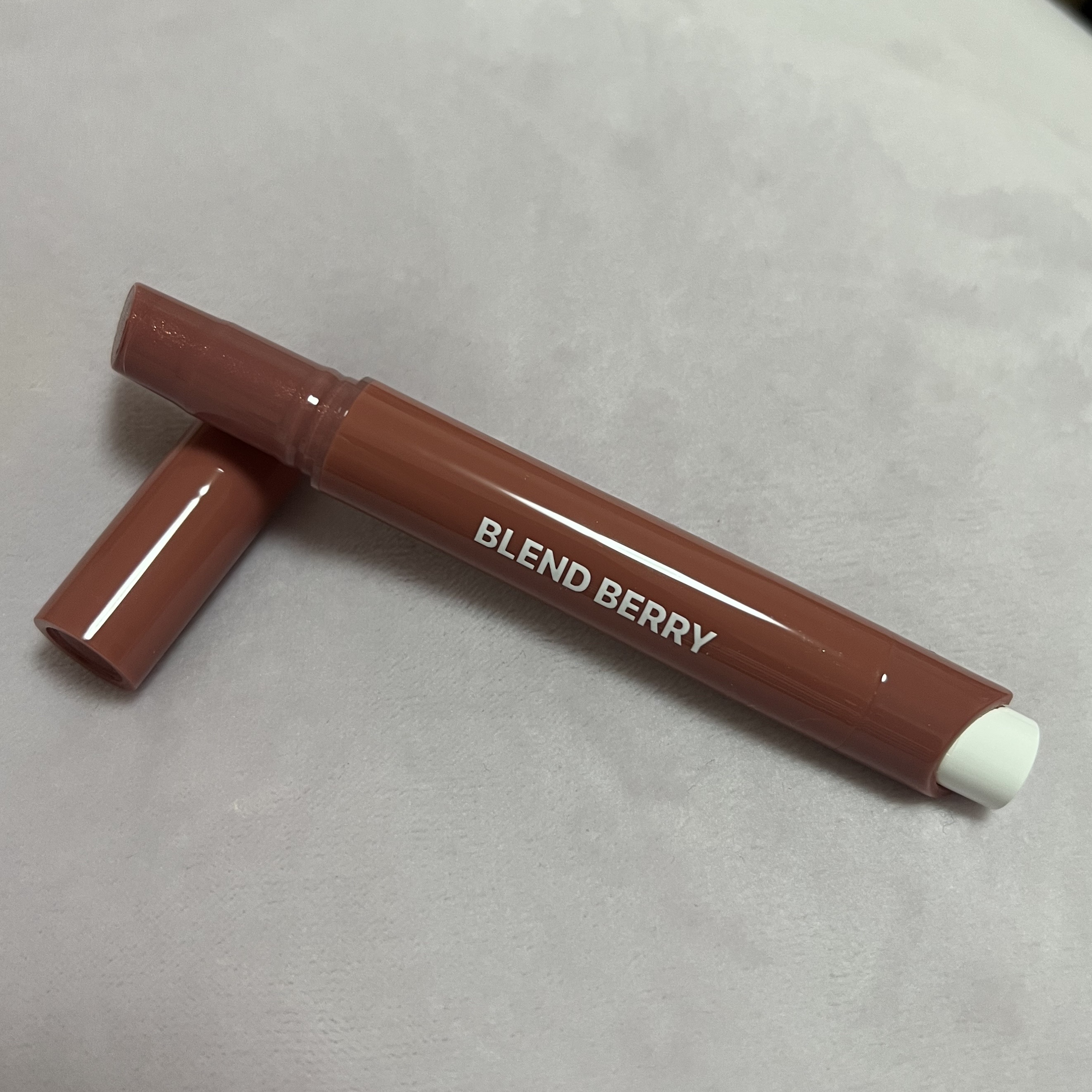 BLEND BERRYのリップはプランパーもあり大好きなんだけど、スウォッチしたらとろけすぎて大変なことになった💦 出したら戻せないタイプのとろけるリップ。密かにラメ入りで可愛いです。