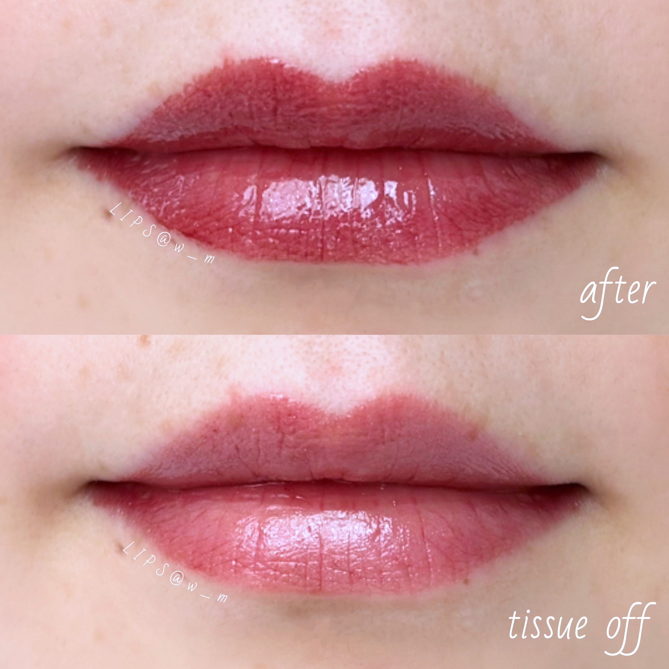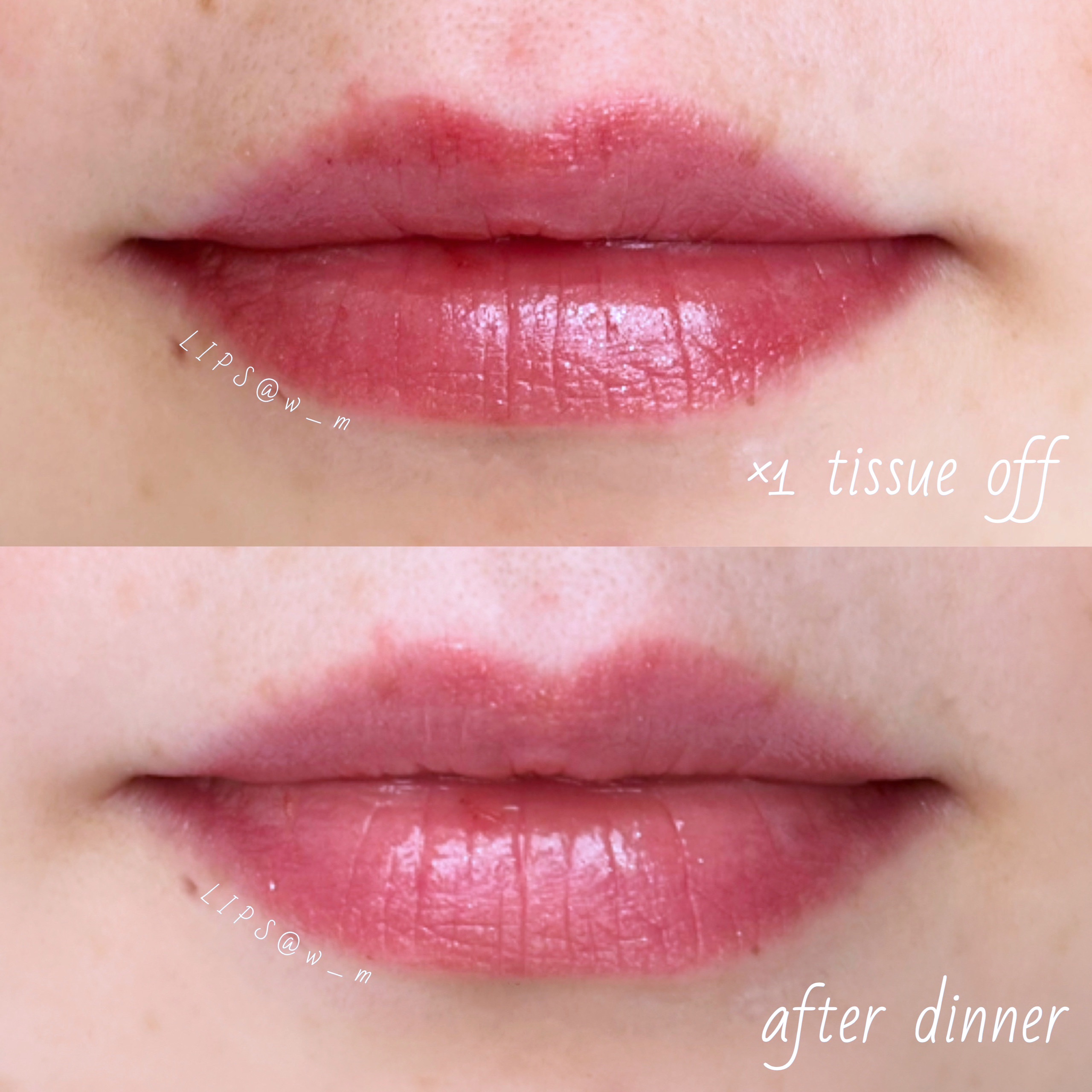 BLENDBERRY ブレンドベリーリップバルーン008うるわしプラムブラウンpic.2ざっくり全体のbeforeafter肌の温度で溶けるような柔らかいテクスチャ清涼感のあるプランプ効果あり(スパイシーバルーン処方)公式では「プラムブラウン」表記ですが、私が塗ると深みのあるローズカラーになりました(トップ画のみ別日撮影なので若干色味が違って見えるかもしれませんが、参考程度に読んで頂ければと思います🙇🏻♀️)pic.7ラメ入りだとレビューされている方が居らっしゃいますが、こちらはパールinタイプなので、ラメではなくパール粒がキラキラと反射して見えます(粒感は全く感じないのでご安心を◎) ーpic.3ティッシュオフ+カップへの色移り問題⚠閲覧注意←塗って2~3分くらい置いてからのティッシュオフ→ティッシュオフ後にマグカップで飲み物を飲んだ箇所のアップ↓上段の2工程を踏んだ後の状態pic.4塗布直後とティッシュオフ後の比較pic.5↑pic.4の後にもう一度塗布してティッシュオフした状態↓上段の後、数時間経ってから夕飯を食べた後保湿感を売りにしているだけあって、ペタっと張り付くようなゆるめテクスチャで尚且つ濃色なので、流石にティッシュオフすると殆ど持っていかれますその後マグカップへの色移りも多少有りましたが、白いカップに濃色は少量でも目立つのでこれは仕方無いかも韓国コスメのティントリップと比べれば穏やかな定着力だけど、その代わりプランプ効果で唇がふっくらして見えるので、最初に塗った時のようなしっかり発色で無くても大丈夫な場合や、落ちた時の差があまり目立たない方が良い場合は、この位が自然に見えて良いかも🧐正直このままだと食事前後の状態が解りにくいと思ったので、今回はもう一度塗布→数分置いてティッシュオフをしてから食事@オムライス美味しかったです(報告)食後はやはりフチが少し目立つ状態にはなったものの、乾燥しているような感覚も無く、意外と定着した色味がまだ残っていたので、がっつり落ちたというよりも【上に乗っていた分が落ちて薄くなった】という感覚が近いかも画像は省略していますが、色持ちが気になる場合は他ティントリップ類と合わせてグロス感覚で、上からリップクリームを重ねても色移りはしなかったので、ツヤ感だけ復活させたい場合はそちらがおすすめです◎ーpic.6リップカラーとリンクしたデザインは◎(本体にカラー名/番号の記載あり)KATEのリップモンスターと比べたら、長さはリプモン1.8本分くらいで直径は少し小さめ白い部分をカチカチと押したら少しずつ出てくるノック式で、キャップを外す手間や間違えて押してしまう心配等は有るものの、他リップと比べたら細身なのでペンを持つ感覚でサクッと塗れる点は◎かなり甘めの匂いあり個人的には梅の板ガムに似てるなと思いましたが、気になる方はご注意を…!下段は手に試したスウォッチティント効果については先に手元で試してこんな感じだったけど、唇に塗ったらまた違った結果になるだろうと思っていたら、良くも悪くも予想通りでしたただカラー自体はかなりお気に入りで、生粋のブルベと言われる私がしっかり塗布してもブラウンが重たくなり過ぎず、良いリップだと褒めて頂ける機会が多くて24年の秋冬〜結構使っていたので、画像撮影の時に途中で使い切ってしまって色が出なくならないか、そちらの方が心配でした😂▼リップケア用品メンソレータムリップリペアワン 角質ケアリップ 今回も前日夜に使用スクラブの粒感が強くないのでデイリー使いしやすいです■機器|iPhone15外カメラ・日中窓際で撮影■加工|Meitu(肌加工のみ)・PhotoDirector(画像全体の明るさや濃度調整の為)不慣れ故に角度や環境がバラバラなのはご愛嬌🙃□□□▷pleasehelpyourself-follow&comment&clip(フォロー&コメント&クリップはご自由にどうぞ)▷writtenby.W|Allrightsreserved.#ブレンドベリー#BLENDBERRY#リップバルーン#リップ#プチプラコスメ