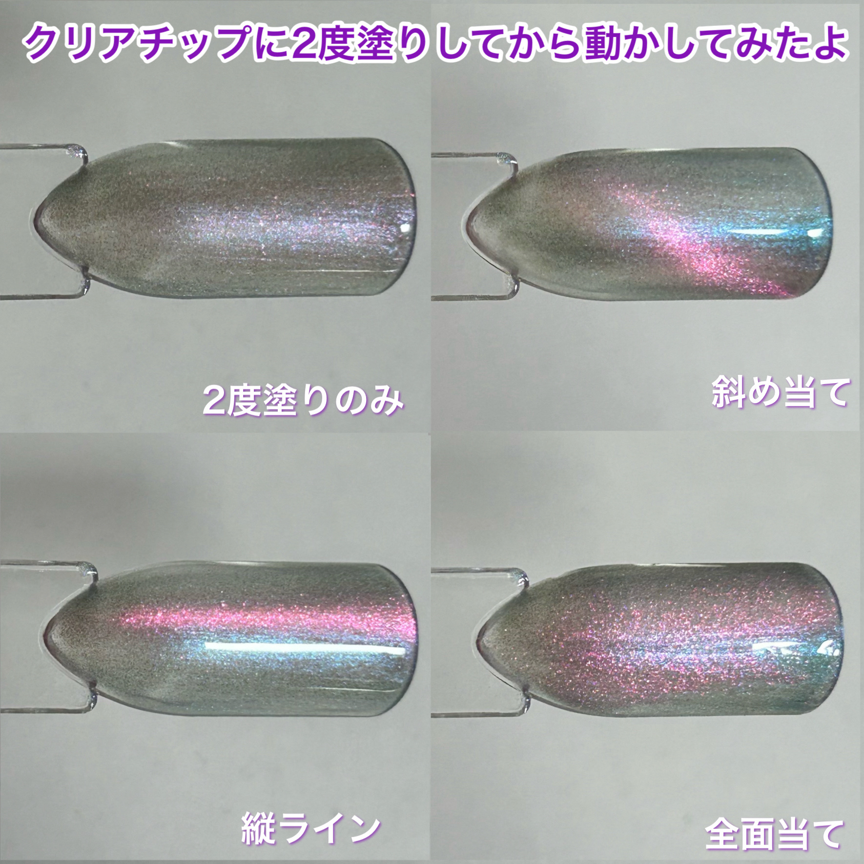 幻想的なカラーが唯一無二。チップとの比較ありネイル工房moonlightgel01多色に輝くマグネットジェルネイル不思議な模様が作れるマグネット。少し前にネイル工房で買ったよ!今回は01を使用したよ青みのあるベースにパープルみたいなカラーで角...