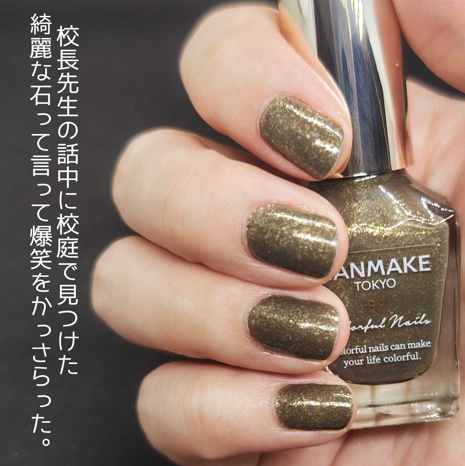 🌟キャンメイクカラフルネイルズN88ゴールドオーア今季のカラフルネイルズ、どれも一癖あるオシャレカラーで素敵!こちらのカラーは、金鉱石をイメージしたカラーだそうで、ゴールドラメがザクザク入ったカーキです。単色塗りでもお洒落に仕上がるの大変良き……金でもキンキラキンじゃなくて落ち着いたカラーなので秋のこっくりした色味の服にもよく合いそうです。何店舗かみて回った際、他のカラーはポツポツ売り切れているお店が多かったのですがこのカラーだけはどこの店舗にもありました。個人的に一番この色が欲しかったのでちょっと意外でした。私と世間、ズレてる……?みんなが思ってるよりけばけばしくないので、ぜひ売っているうちに試してみて欲しいカラーです。私はストック買うか検討しています。皆さんも是非!#ラメグリッター祭り
