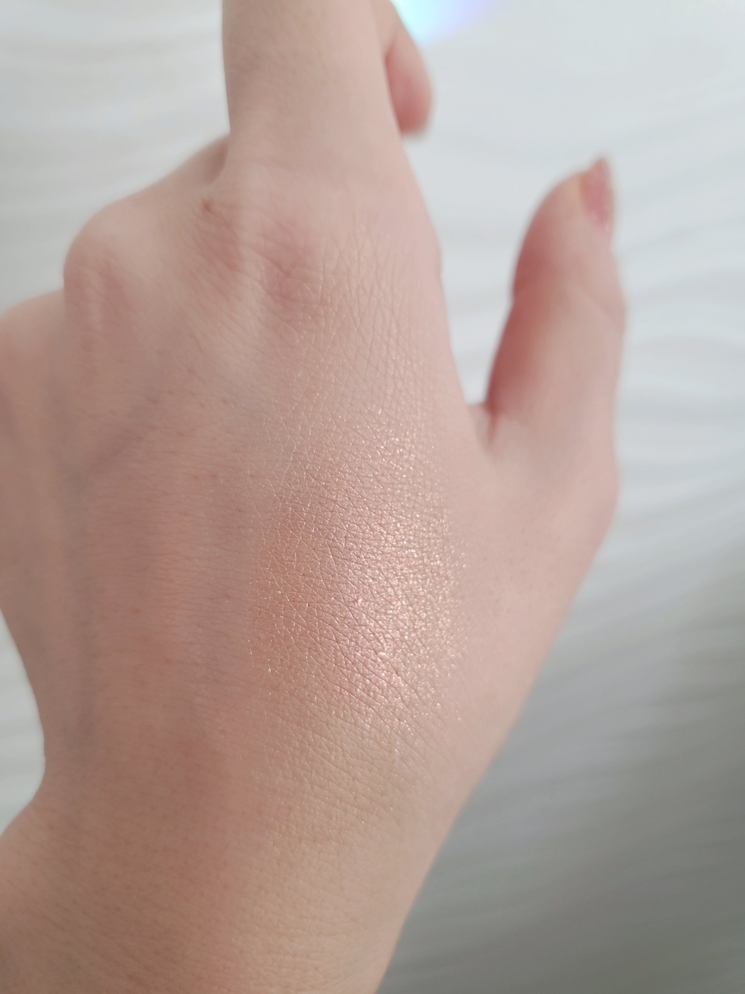 ぷにっと質感は本当でした笑 ぷにぷに!だからブラシでとるより、手で塗ったほうが塗りやすい。しっとりしてるから密着してくれる感がある。 色の感じはうっすらピンク、どぎつい感じではなく、ラメがメインだから涙袋に塗るとぷくっと感が出てとても良い。 アイシャドウ下地にする勢いで使ってみるのもいいかも。 ラメの粒?粒子?は大きめ。目の周りについたときに大き目のシルバーラメがキラキラくっついてる。