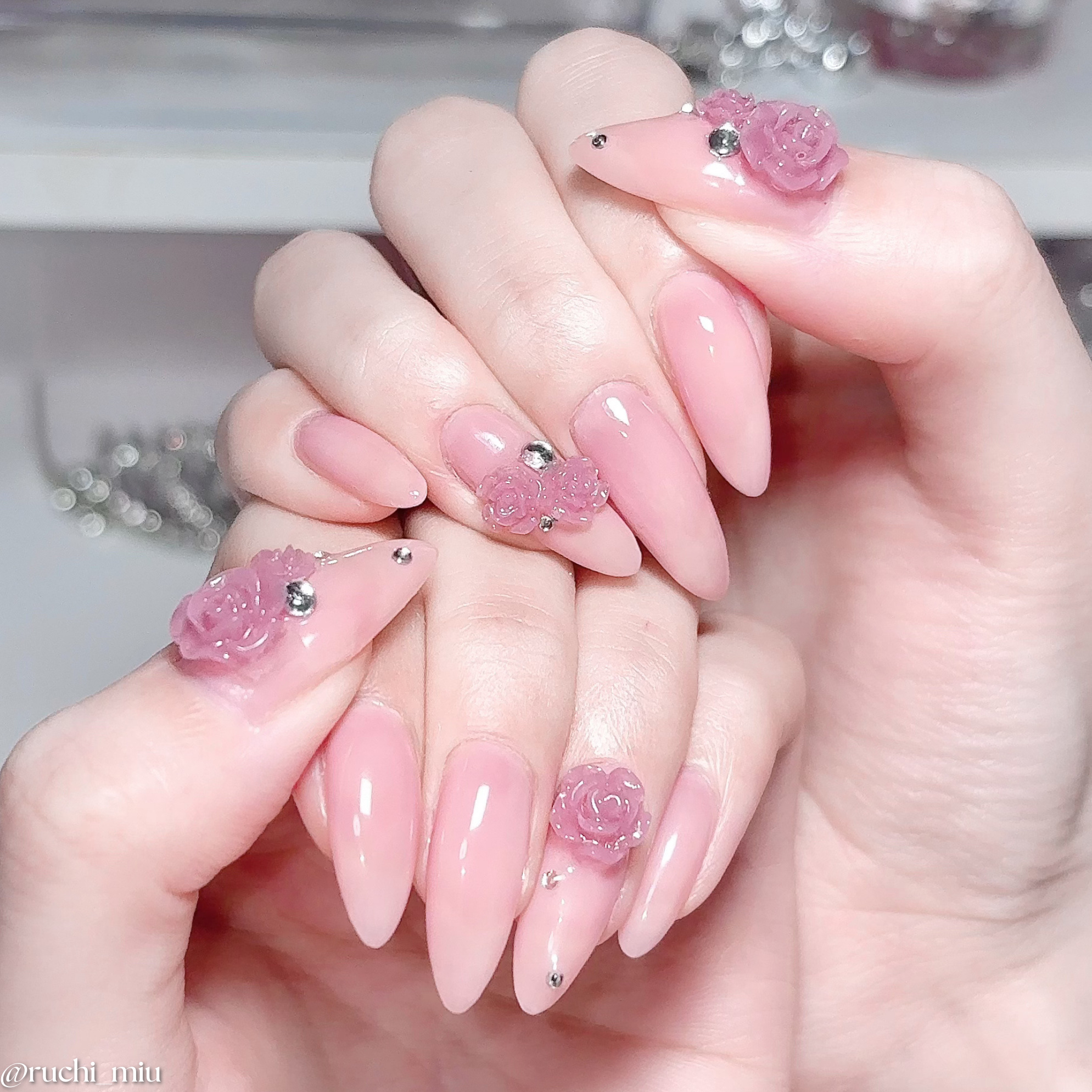 セルフネイル記録🎀💅🏻♦GeléebyDecorativeNailはがせるベースジェル/ビルダートップジェル♦LULUGELベースジェル♦DAISOジェルネイルピンクベージュ♦クレヨンタッチミープラスカラージェルキャンディベリー♡.*・。┈┈┈┈┈┈┈┈┈┈┈。・*.♡薔薇のシリコンモールド買ったから薔薇パーツ大量生産できる🎶パーツ乗せるだけだから、めちゃ簡単に上品な薔薇ネイルの完成🌹✨ベースカラーの上にワッツのジェルのキャンディベリーを重ねるだけで、ちゅるんとしたピンクにできておすすめ👌🏻💓♡.*・。┈┈┈┈┈┈┈┈┈┈┈。・*.♡#ジェルネイル#セルフネイル#セルフジェルネイル#ネイルデザイン#ジェルネイルデザイン#100均ネイル#ピンクネイル#プチプラネイル#薔薇ネイル#ローズネイル#ちゅるんネイル#最旬ちゅるんネイル