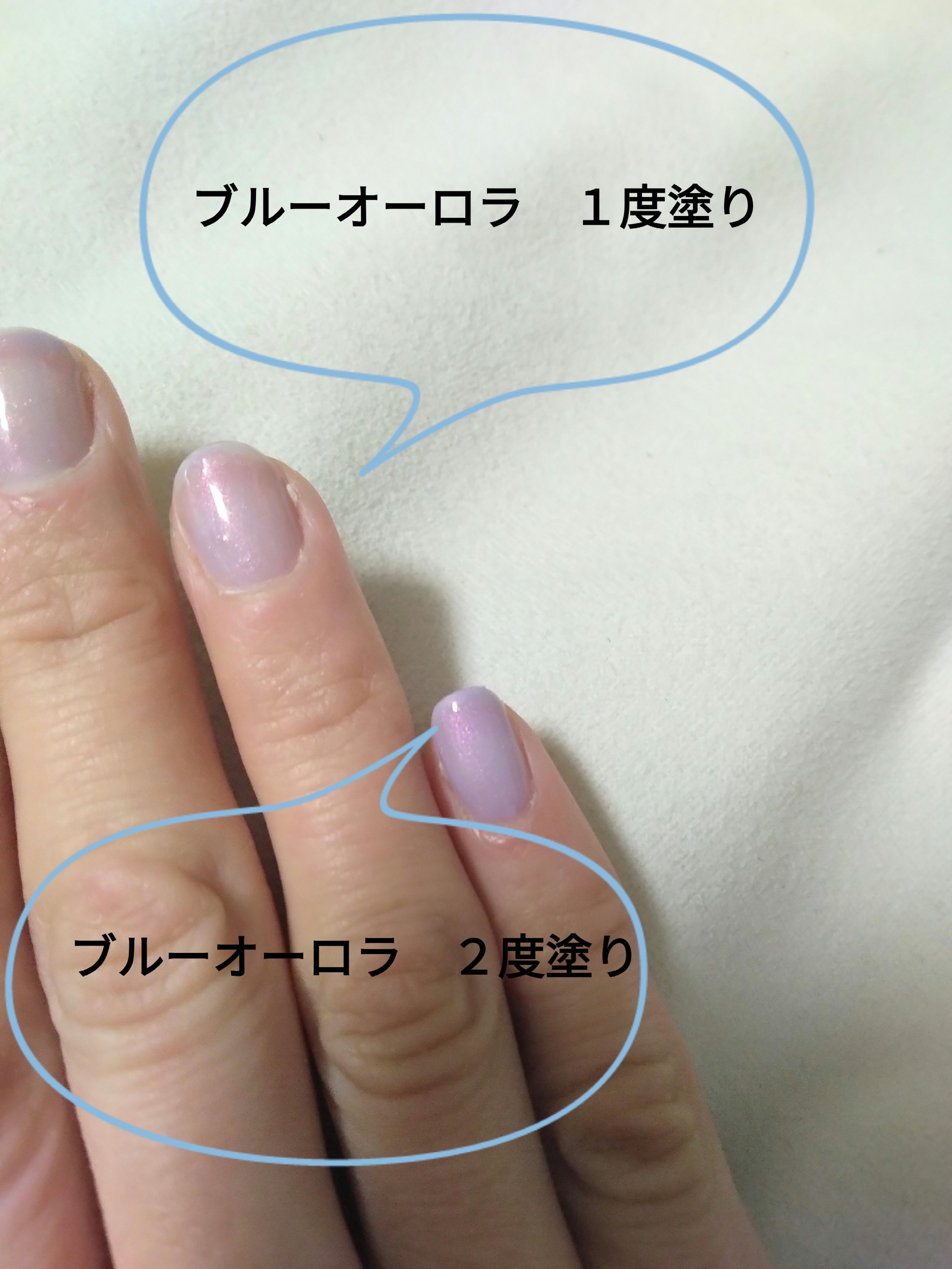 ブルーオーロラを一度塗りして、オーロラホロを重ねて仕上げたり、爪先だけ重ねたり🥰 ホログリッター重ねて、ムラをごまかせるのもいい所🤣 特に利き手じゃない方の手でうまく塗れないから、表面は固まってるのに、中が未硬化って事が何度もあって😭