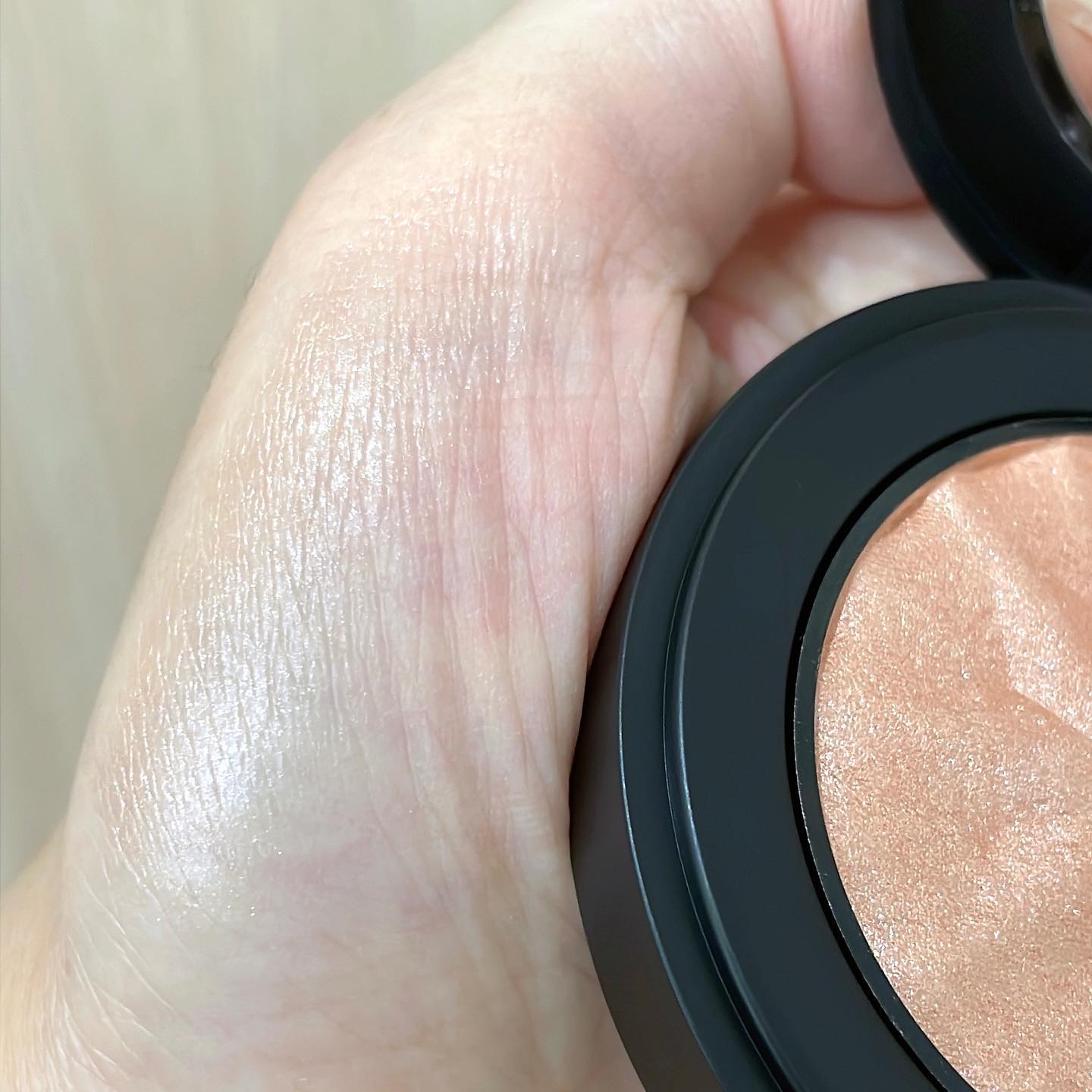 パウダーだけど保湿成分入りで肌に吸い付くようなしっとりテクスチャで濡れたような潤み艶✨ マルチユースでチークやアイシャドウとしても◎ 勿論ベアミネラルなので成分は超良好。 多色パールで色が物凄く可愛い。 粉自体が本当しっとりでクリームみたいに肌にピッタリ密着するし濃淡の調節は簡単。 発色自体はとても良い。良くも悪くも外資系コスメだなーという感じ。 ハイライトって言うよりチーク?ってくらい色が出る。 肌に溶け込むように馴染んで艶々になる粉っぽさのないハイライトやチーク探してる人はタッチアップお勧めしたい。