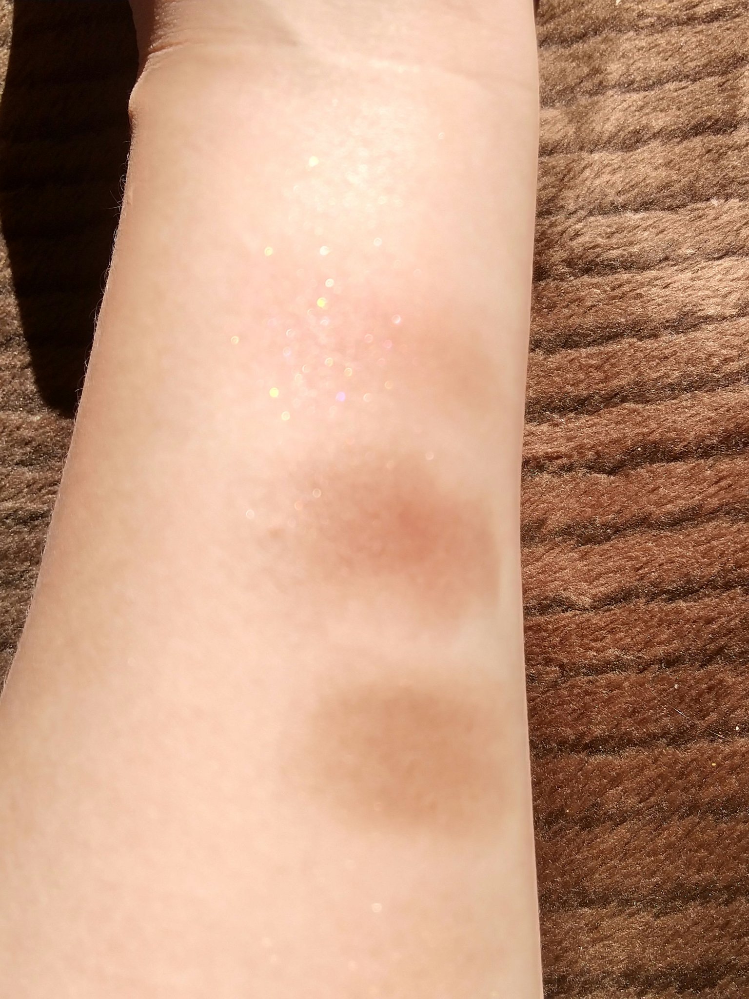 パケが旧パケより少し大きくなりました! 粉質はしっとりしてて滑らかです! シマーな質感でマット感が控えめなのでラメが不得意、得意関係なく使用できます! 1番下のラメはキラキラしてて可愛い🤭💭🎀 涙袋激盛れしますー! ピンクはピンクすぎず不得意な方でも使用できると思います! 香りがチョコの甘い香りで使用する時いつも嗅いでしまいます🤫💭💞 ただ好き嫌いが分かれるかもしれないです!! 私は大好きな香りです🤭💭💓 アイシャドウ付けた時は香り感じません💦 星は4くらいにしようかな🤔💭🌀 私自身好きでリピ確しても香りが苦手なお方がいらっしゃると思うので🥲🤲🏻💦