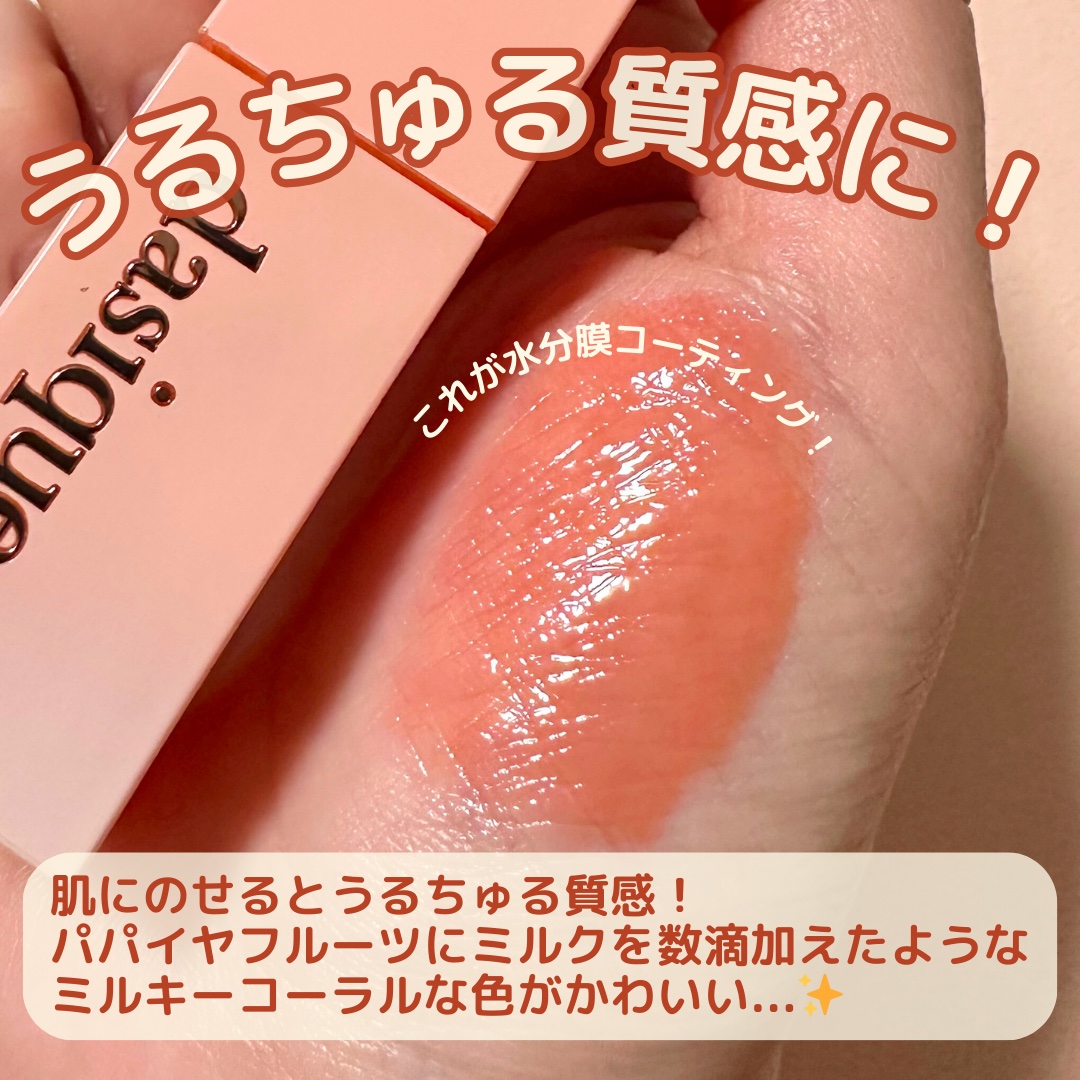 dasiqueジューシーデューイティント08パパイヤミルクベタつかないしっとりフォーミュラで、透明感あふれる「果汁コーティング」が持続肌なじみの良いブライトコーラルカラーにほんのりミルク感を加えた万能カラー単体使いも可愛いけど彩度高めなリップと組み合わせもおすすめ#PR#dasique#メガ割#メガ割おすすめ #Qoo