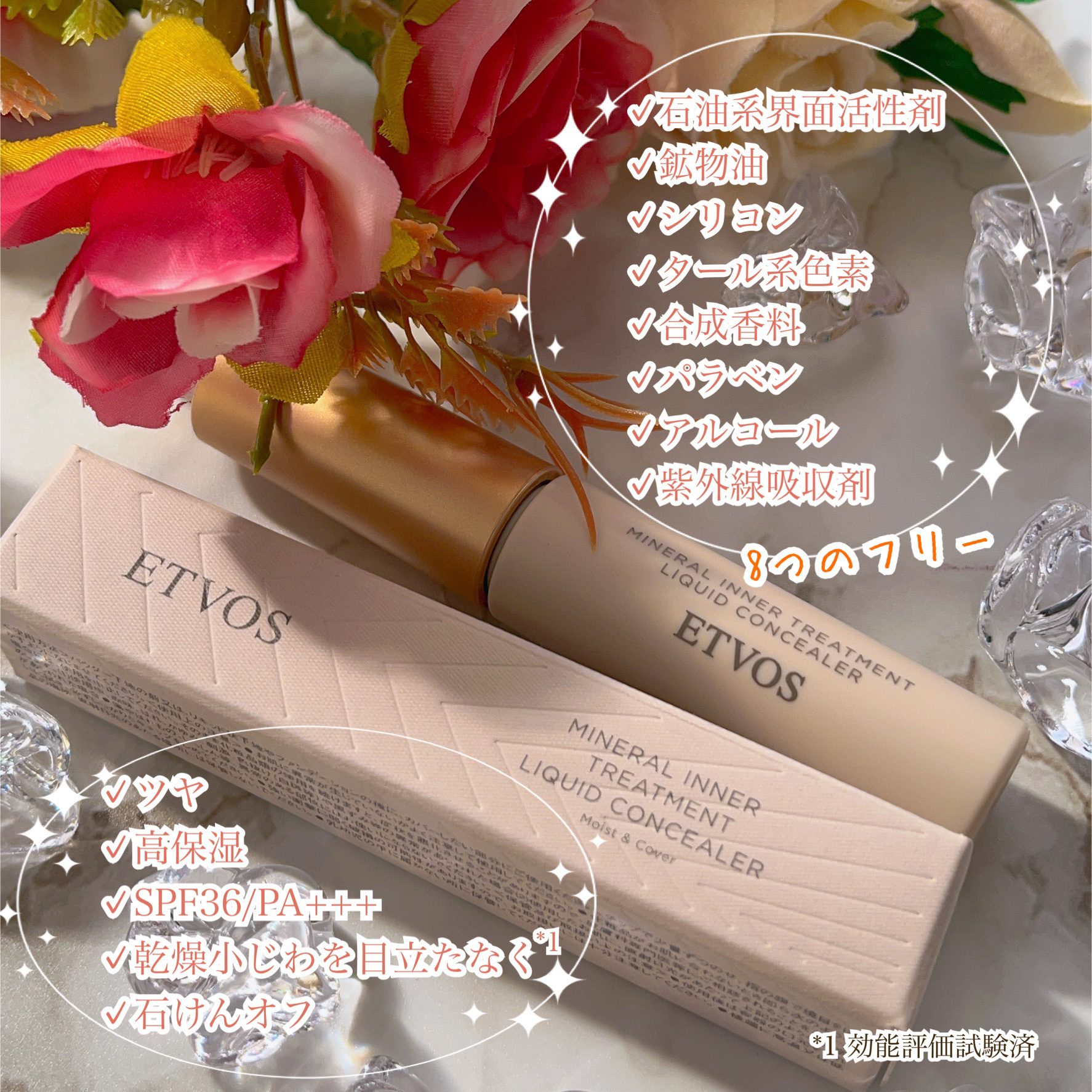 初#ETOVOS艶がとてもいい😊👏石鹸で落とせるくらい肌に優しいから夜勤メイクにも最適♡コンシーラーのオレンジベージュは目の下の隈がビックリするくらい隠れた!...