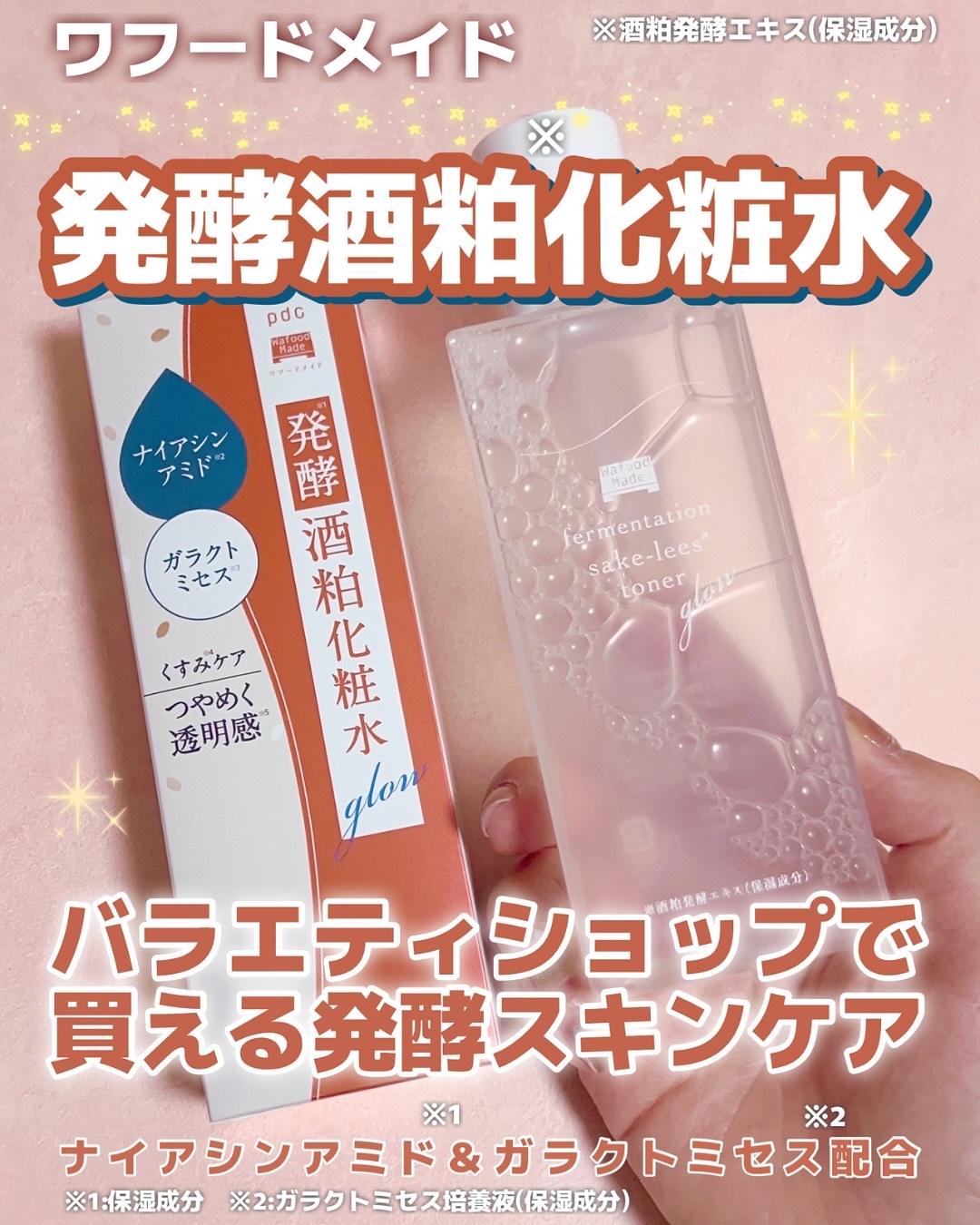 \バラエティショップで買える発酵スキンケア/【ワフードメイド 発酵酒粕(注1)化粧水】発酵酒粕エキス(注1)+ナイアシンアミド(注2)+ガラクトミセス(注3)配合の、自分史上最高透明感(注4)のある肌へ♡注1:酒粕発酵エキス(保湿成分)注2:保湿成分注3:ガラクトミセス培養液(保湿成分)注4:うるおいによるこだわりの保湿成分配合だから、使うたびしっとりもちもち肌になってる気がします!テクスチャーはさらっとしてて、化粧水としてはもちろん、拭き取りやパックとしても使えるのが嬉しい〜◎肌想いのフリー処方になってて、乾燥による敏感肌さんも使えます。(敏感肌パッチテスト済み 全ての方に肌トラブルが起こらないということではありません)ほんのりフルーティな香りなのも特徴的でした♡また、酒粕(注1)パック グローは化粧水と一緒に使うのもおすすめ!1分パックでしっとり肌に導いてくれるみたいで、メイク前にもおすすめです◎バラエティショップでもぜひチェックしてみてくださいー!✼••┈┈••✼••┈┈••✼••┈┈••✼••┈┈••✼#PR#ワフードメイド#発酵酒粕化粧⽔#発酵スキンケア#ガラクトミセス#ナイアシンアミド#スキンケア#新作スキンケア#発酵#化粧⽔#プチプラ#コスメ好きさんと繋がりたい#スキンケア好きな人と繋がりたい#美容垢#美容好きな人と繋がりたい