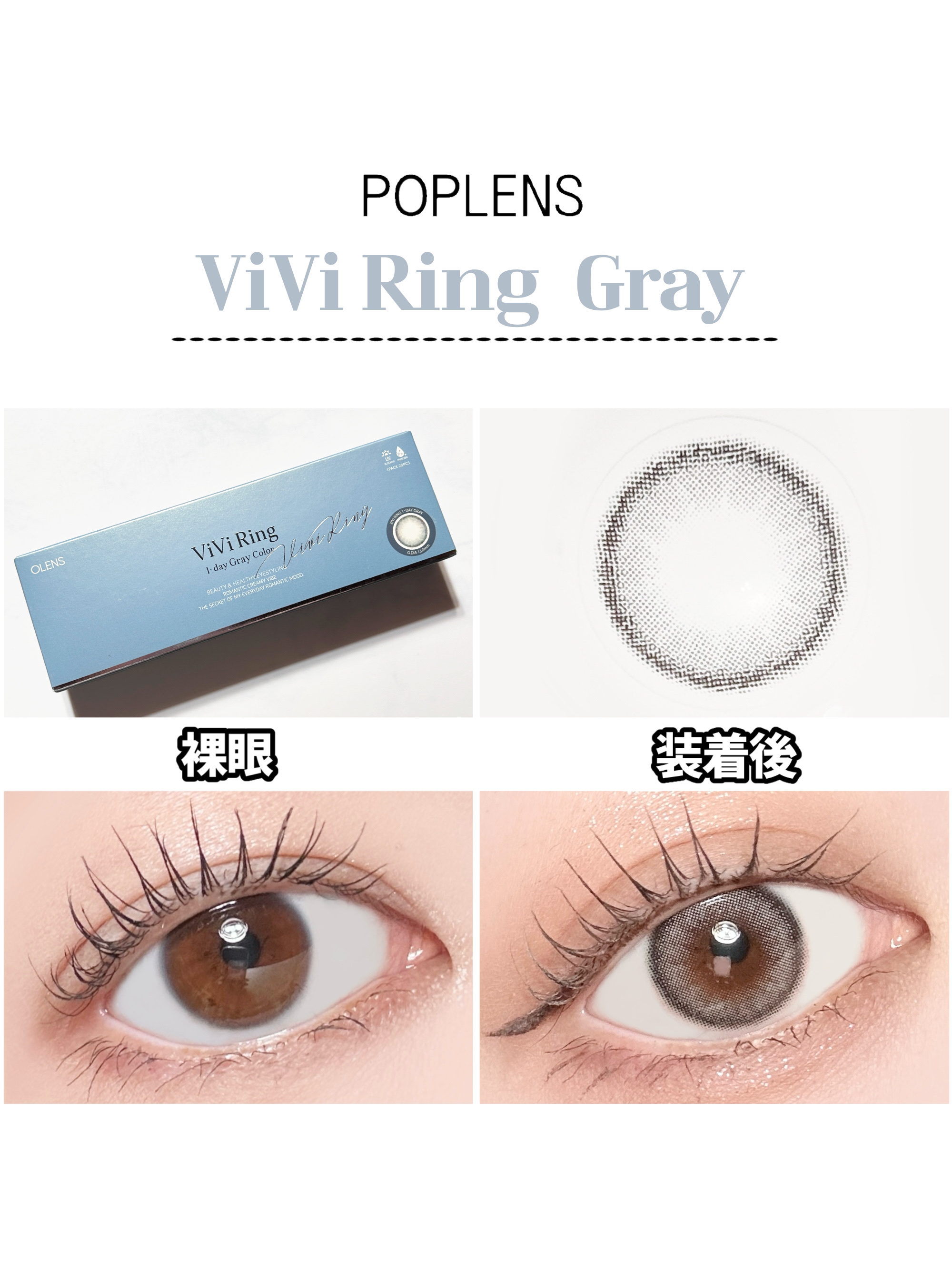 OLENSViViRing1DayGrayDIA14.2mm着色直径 13.0mm(体感12.8〜12.9mm)BC8.7mm含水率48%2枚目 自然光3枚目 室内4枚目 動画5枚目 レンズ・似てるレンズキャットリング(キャットリングの方がつるんとした質感、フチもくっきり、白みのあるグレーさが似ている、サイズはキャットリングの方がやや大きい)✂ーーーーーーーーーーーーーーーーーーー※今回購入したものは日本承認版ではなく、POPLENS公式サイトで購入したものです公式サイトでグレーだけ10枚入りがなくなってて、20枚入りを購入室内ではフチが少し抑えめに、中は白みのあるグレーと、ほのかに青みを感じるような発色、自然光や明るい場所だと、フチがわかりやすくなり、かなり立体感が出てハーフっぽさを感じるくらいしっかりグレーになります場所によってすごく見え方が変わるレンズで個人的には室内での発色感が自然で好き冷たさのあるグレーがかわいい、、サイズは小さめなんだけどフチがかなりわかりやすいので物足りなさはありません同じviviringの中でも、グレーの方がすこーし小さく感じる小さめサイズで、じゅわっとフチ、つけるだけでかっこいい感じになるのがすごく気に入りました日常使いというより、私は少し特別な日につけたいような立ち位置のレンズです結構元の目によって発色が変わりやすいような気がするので、裸眼の色が近い方のレポを参考にするのが吉かと!#ViViRing1dayグレー