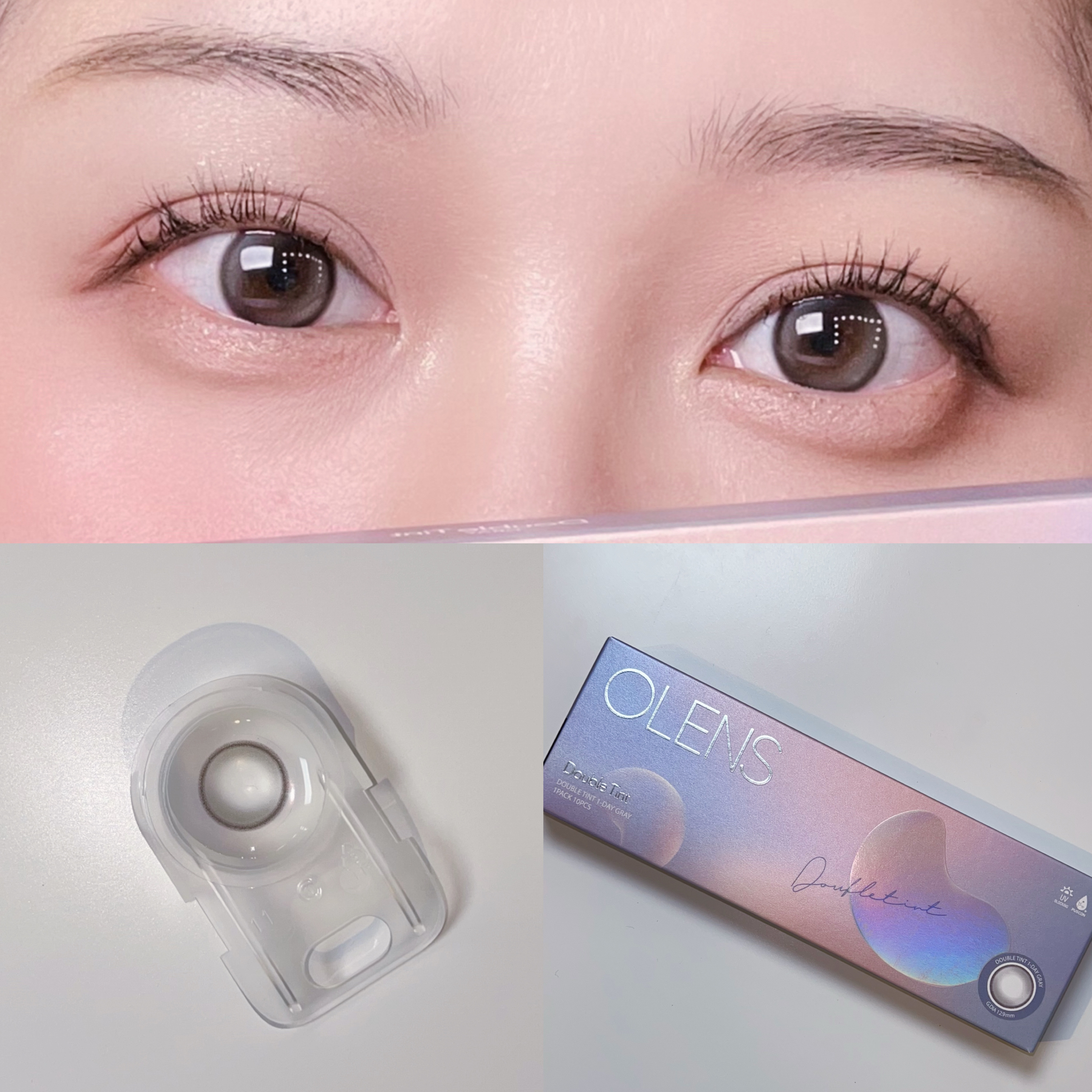 OLENSDoubleTint1dayグレーちゅるんと透け感のあるOLENSのカラコンをご紹介♡グレーは使いづらいという方もいると思いますが、DoubleTintは自然に馴染むのでグレー初心者さんでも使いやすい水光カラコンです🩷くりんとした丸...