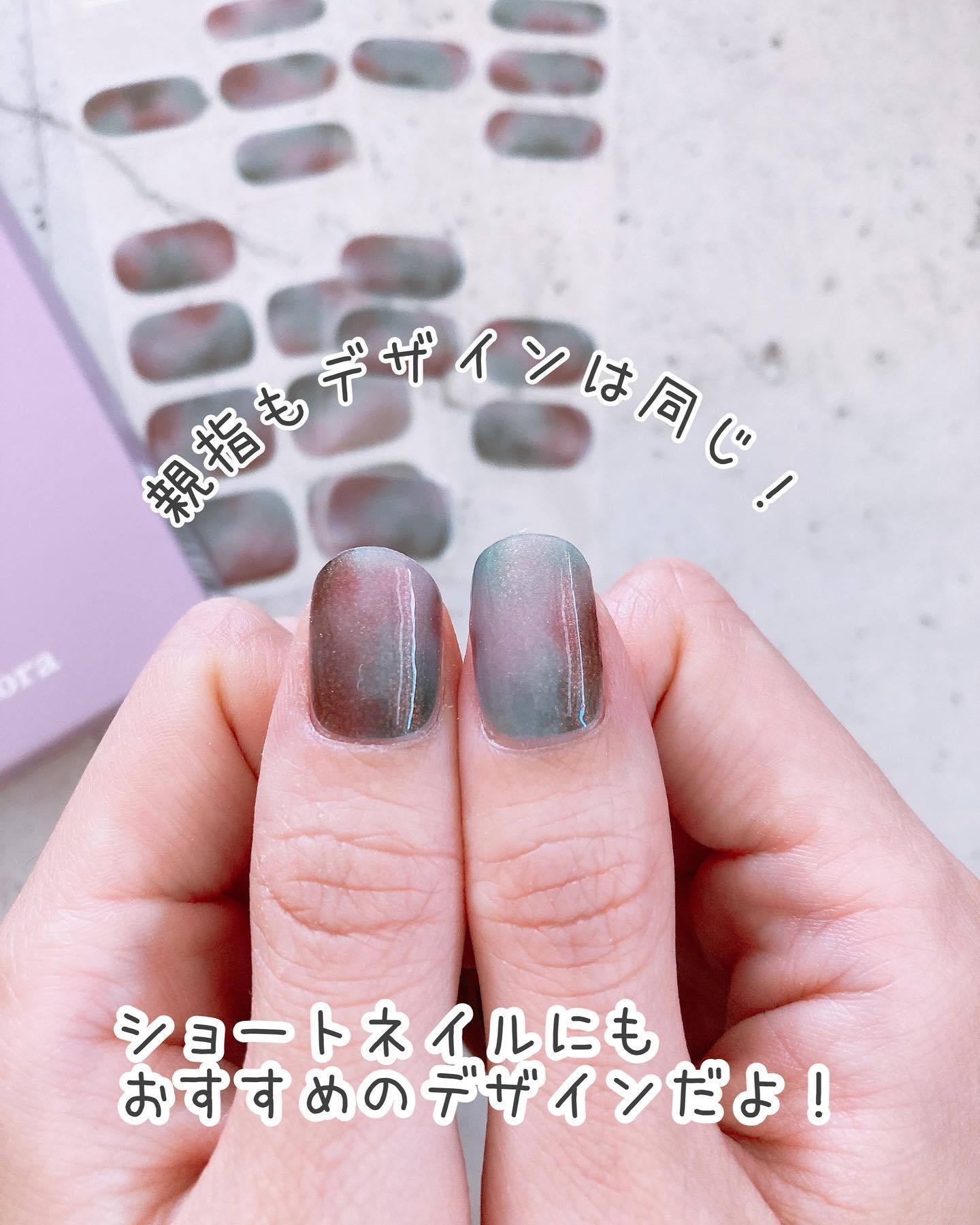 ハロウィンネイルにもピッタリだった不気味な雰囲気のニュアンスネイル❤️この色味がなんともおしゃれなんです!ここ最近では1番気に入ってるデザインです!これはもうショートネイルさんに使ってみてほしい!私もこのデザインのために爪を短くしちゃいました😊短い爪の中にもいろんな色味が混ざり合っていてなんともおしゃれな雰囲気❤️秋だけでなくて、梅雨時期なんかにもよさそうな落ち着いた色合いです☂️パウダーラメの色味は見る角度や光の加減でも変わってくる感じ。オレンジっぽかったりグリーンにも見えたりして幻想的な雰囲気でした✨新作もたびたび出るんだけど、少し前のデザインから探してても掘り出しものが多くて❤️過去のデザインも最近再入荷されて増えてきているので、ぜひチェックしてみてくださいね😊#オホーラ #ohora#推しohora#ニュアンスネイル#ジェルネイルシール#ネイルシール #貼るネイル #貼るジェルネイル#貼るだけネイル #韓国ネイル #簡単ネイル #時短ネイル #初心者ネイル ネイル初心者 #セミキュアジェルネイル#パウダーラメ#偏光ラメ#秋ネイル2023#秋冬ネイルデザイン#オホーラジェルネイル#ohoranails#ohoraネイル#トレンドネイル2023#トレンドネイルデザイン#秋色ネイル