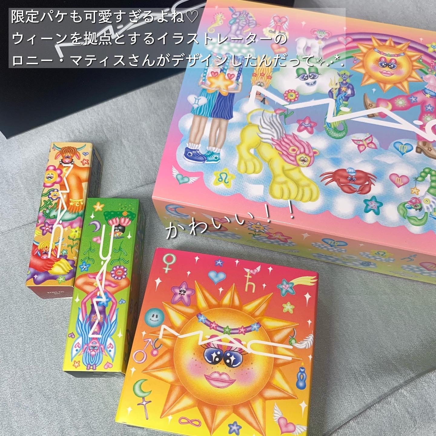 M•A•Cってシンプル&かっこいい黒パケなイメージだけど、限定でこんなにカラフルなパッケージのコスメが登場❤️ シアーなツヤ発色で肌にすっとなじむ「ラスターガラス リップスティック」が12星座別に12色。 繊細なツヤめきとまばゆい輝きを放つ「ダズル シャドウ リキッド」がエレメント(火・地・風・水)別に4色。 ベースメイクに絶妙なニュアンスのツヤ感を与える「ミネラライズ スキンフィニッシュ」は太陽をイメージした1色。
