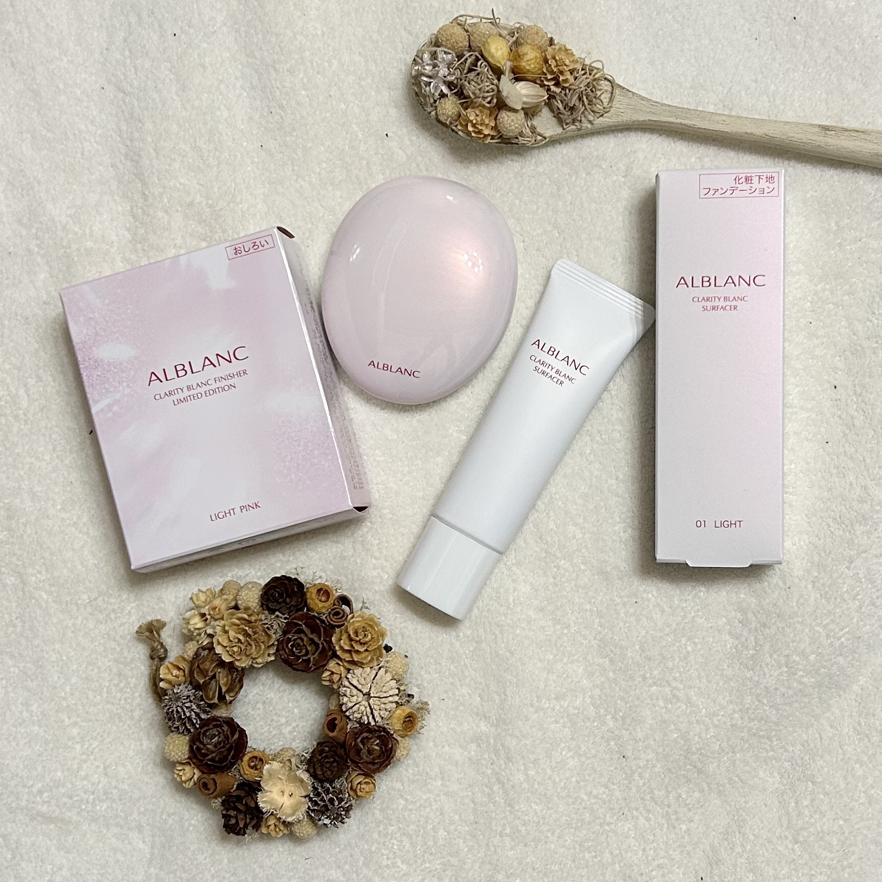 クラリティーブラン サーフェイサーは01 ライトでいい感じでした🤗 先端が細くて使いたい分だけ出しやすい便利設計✨ フィニッシャーはパフにポンポンしても白いパウダーなのでこんな感じ🤗 個人的にはナチュラルなのにカバー力が強いから肌が明るく見えていい感じでした✨ 普段なかなか、おしろいは使わないのでなんか新鮮かも🥰