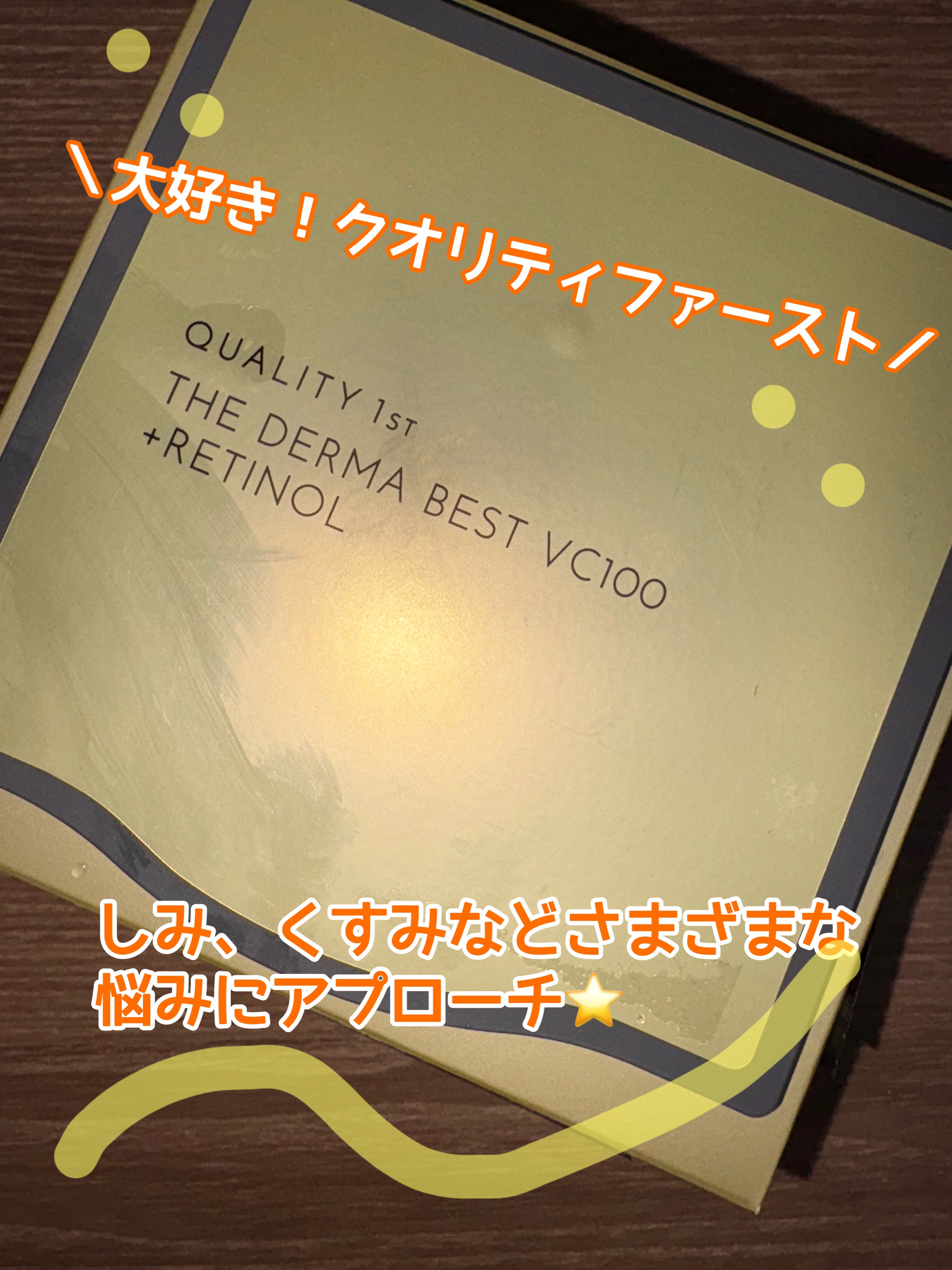 _大好きな#クオリティファーストザ・ダーマベストVC100プラスレチノールさまざまな肌悩みが気になりはじめたわたしにまさにぴったり!!毎日のケアがなんだかんだ大事ですよね〜この液たっぷりでひたひたになったマスク、ぴたりと密着感もばっちり!つける時間は三分間でよいそうですよ〜6種類の高濃度ビタミンC、7%高濃度ナイアシンアミド、独自原料のガラクトアミノ50%、レチノール、6種類のセラミドを配合した、シリーズ最高峰のエイジングケアマスクだそうです✨────────────#レチノール#毛穴ケア#エイジングケア#シートパック#保湿#ドラコス#コスメレビュー#スキンケア#美肌#ビタミンC#美容