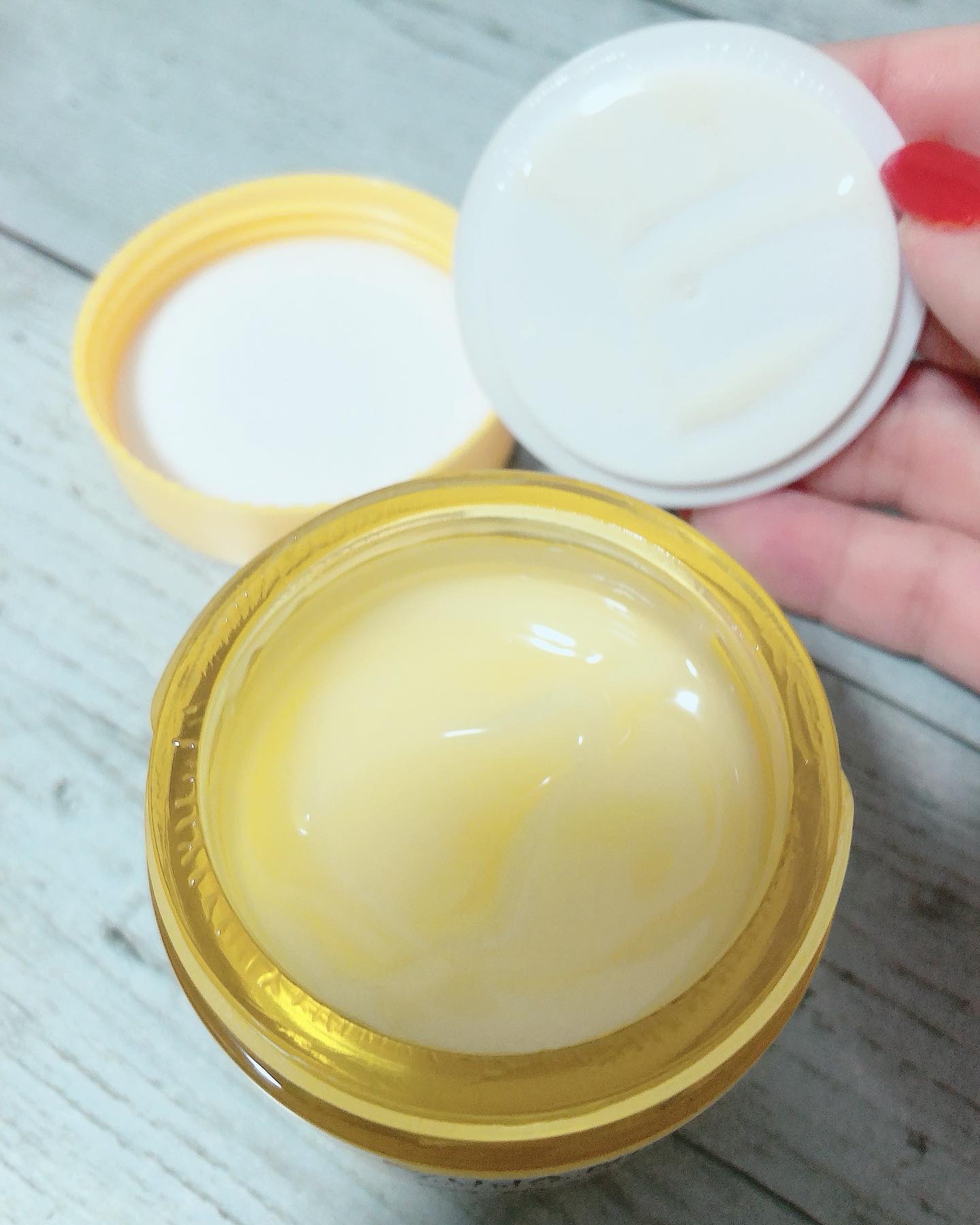 少し白みがかった薄黄色のエッセンス ゆずの少し苦みもある爽やかな香り。合成香料ではなく、ユズ果皮油から抽出した香りだそう。本物のゆずにかなり近い香りがする ぷるんとしたテクスチャで肌にすっと馴染む。全然ベタつかないので朝にもぴったり! ビタミンC配合の美容液なので私は朝に使うのが好きだった ナイアシンアミド10%配合だけど刺激も感じず、使っていると起きた時の肌のくすみが明るくなったような印象に。特にユズナイアシン アンチブレミッシュクリームと合わせて使うと効果がさらにアップするのでライン使いがおすすめ💛 ぷるんとしたテクスチャの水分クリーム 重くならずに肌に潤いを与えてくれる。セラムと同じユズの香りが癒される 朝でも問題なく使えるけど、このクリームは夜使う方が個人的には好みだった。でもより効果を実感したい人はセットで使うのが◎ どちらも好きな使用感だったけど、個人的には特にセラムがお気に入り。頂いてから週4程で使っていたら二ヶ月で残り半分を切った